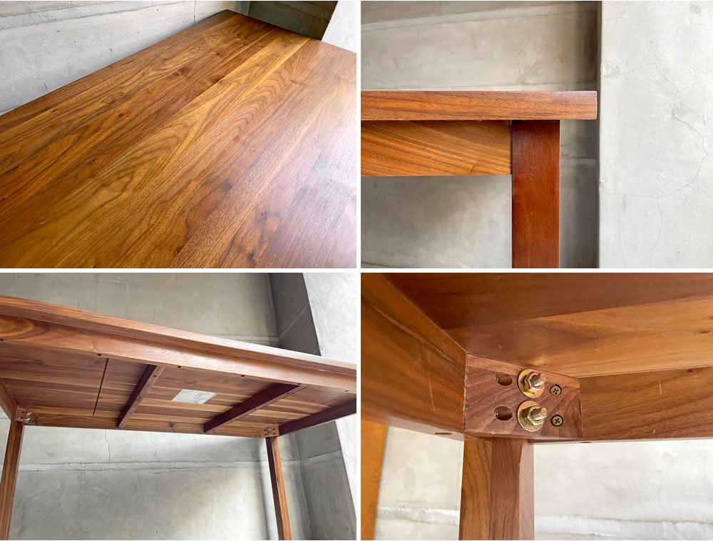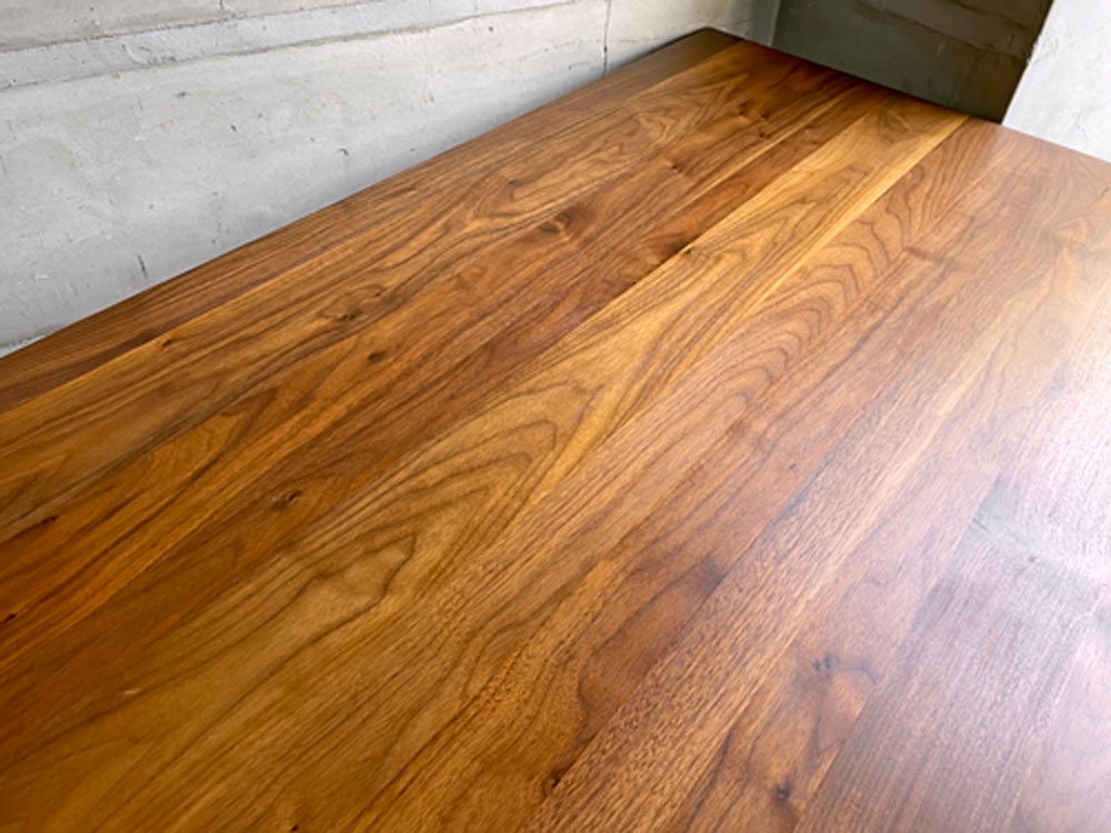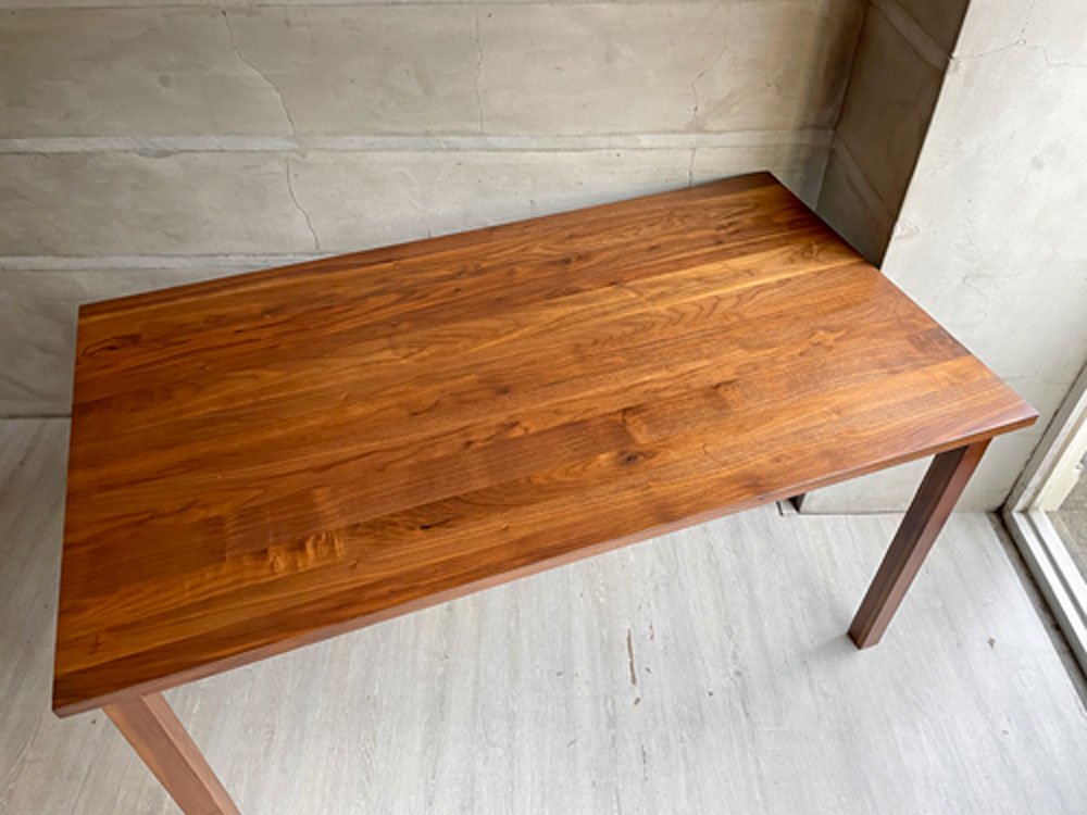 ウォールナット材の優しい褐色と無駄が削ぎ落されたデザインは様々なインテリアテイストと相性が良く、また食卓や作業台など様々な用途でお使い頂けます。