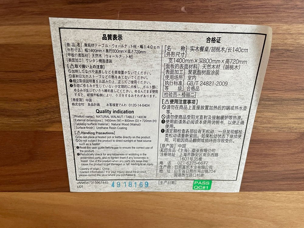 無印良品 MUJI ダイニングテーブル 無垢集成材 W140cm ウォールナット材 ワークテーブル ナチュラル シンプルデザイン ♪
