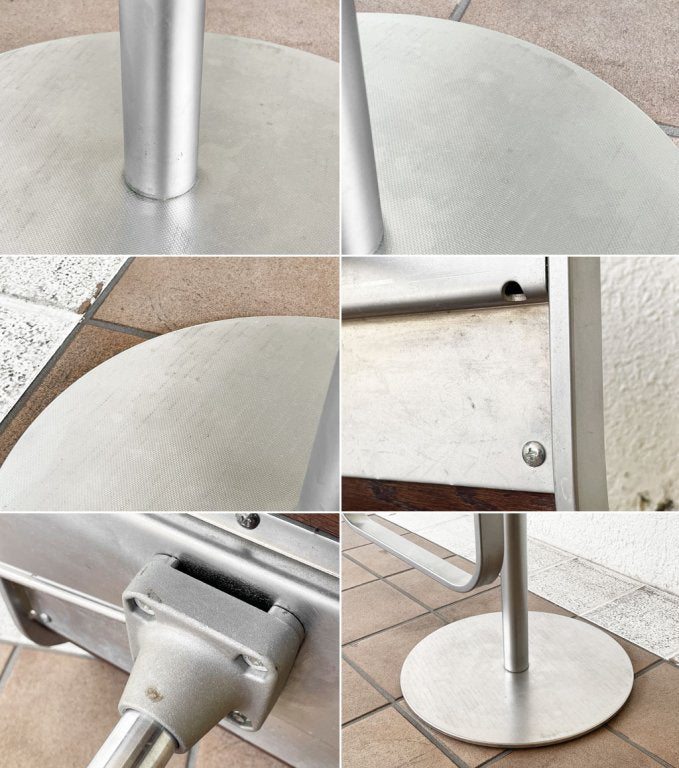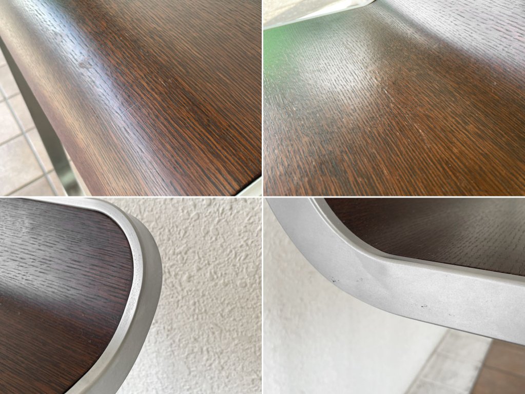 使用に伴い、ウッドシート部には細かなスレ、線キズが、またスチール部にはスレ、若干の汚れやくすみが散見されますが、どれも美観を大きく損ねるものでは御座いません。やや使用感はございますが機能に問題はなく、これからも気持ちよくお使い頂けるコンディションを保っております。