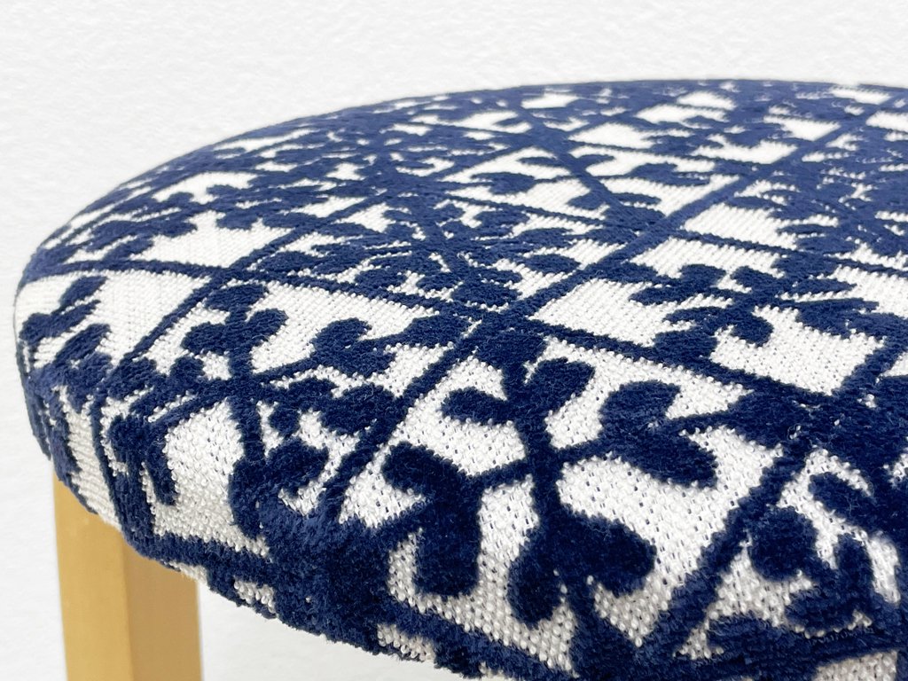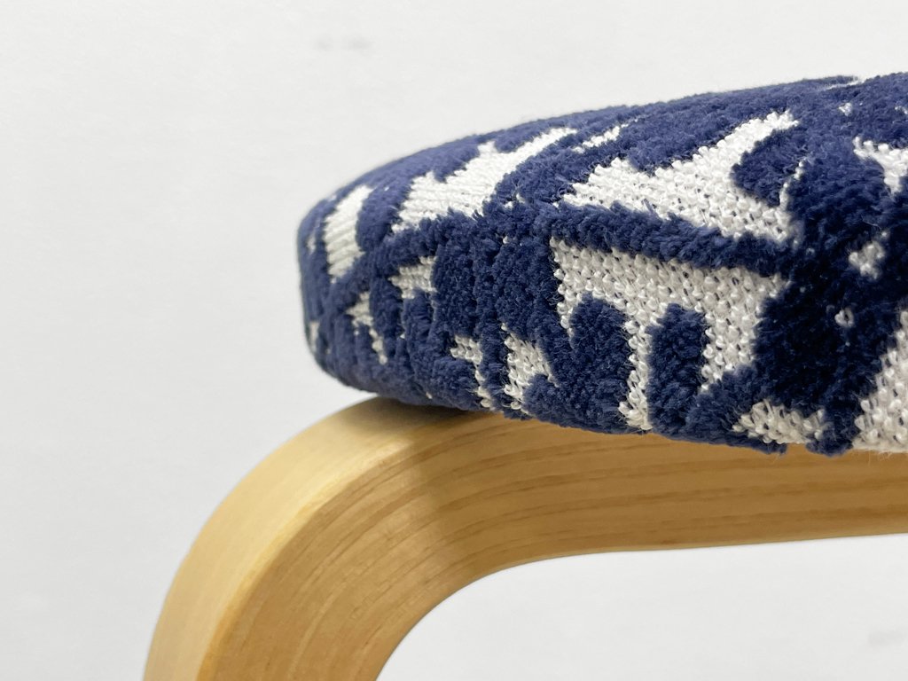 また今回は2013年に80周年を記念してテキスタイルブランド「ミナペルホネン」とコラボレーションした限定モデルが入荷!当時ファブリックは全5種類、限定30脚のみで松屋銀座にて販売されていたようです。こちらのスツールには万華鏡から覗く世界を表現した「カレイドスコープ / kaleidoscope」が使用されています。