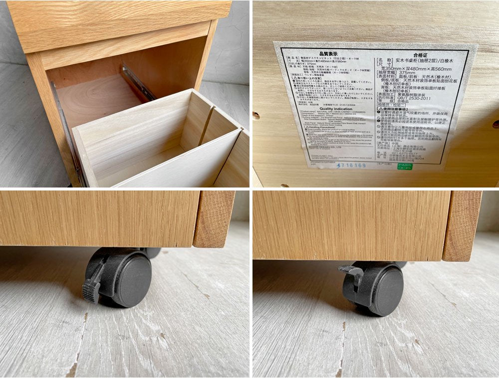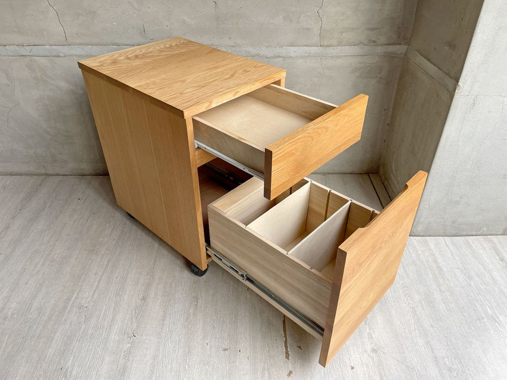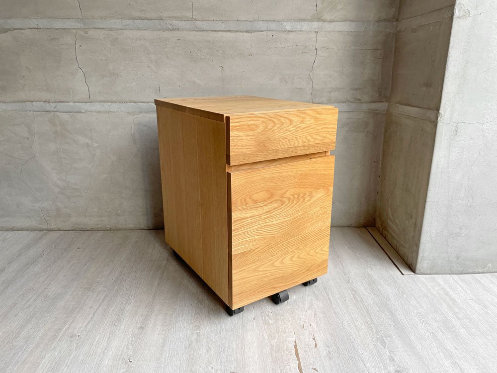 無印良品 MUJI 木製デスクキャビネット オーク材 デスクワゴン ナチュラル キャスター付き 定価¥25,000- ♪