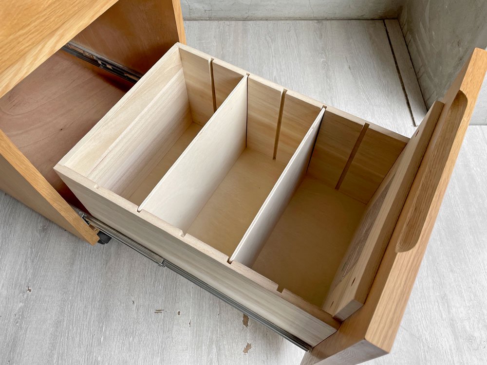 筆記用具などの小物の収納に便利な浅型抽斗と書類や本類を整理頂ける深型抽斗。