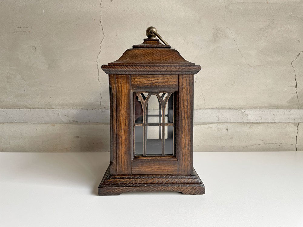 正面ガラスの奥には、装飾が施された時分針とローマ数字が書かれた羊皮紙の文字盤を配置、時計の側面にはアンティークな透かし彫りの窓が付いており、小さな人形の家のような雰囲気。