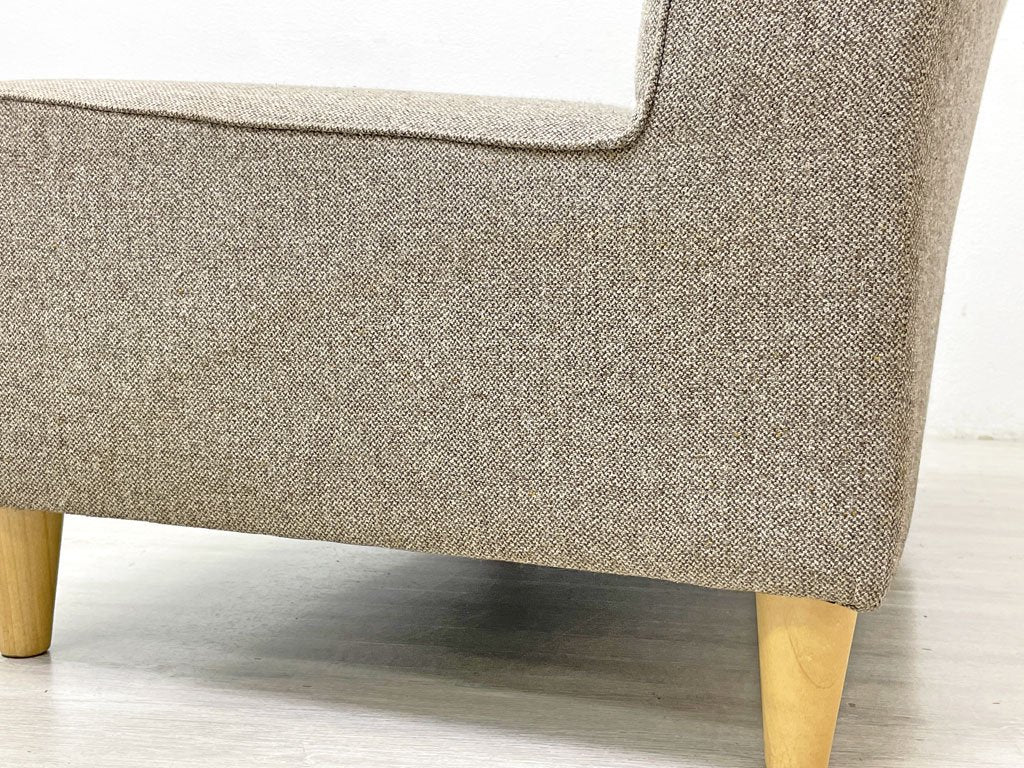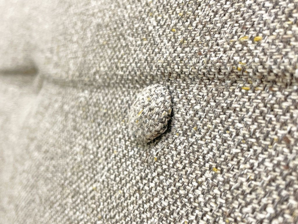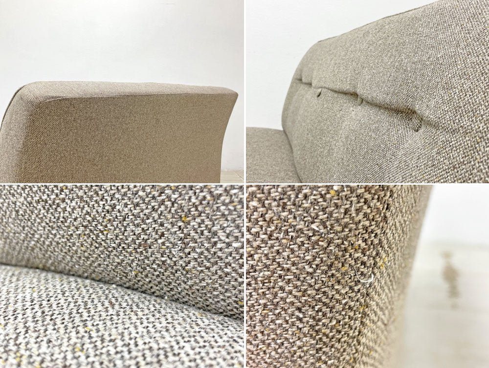 使用に伴う擦れや毛羽立ちの他、両後脚付近の薄染み、細かな毛玉や生地の緩みによる型崩れや軽度のへたり、背もたれ中央のボタンは浮きを接着した痕跡が見られる等やや使用感がございます。グラつき等ご使用に問題となるダメージはございませんが状態を鑑みお求めやすいお値段でのご提供となります。場所を取らずに寛げる、コンパクトなソファをお探しの方はどうぞこの機会にご検討下さいませ。