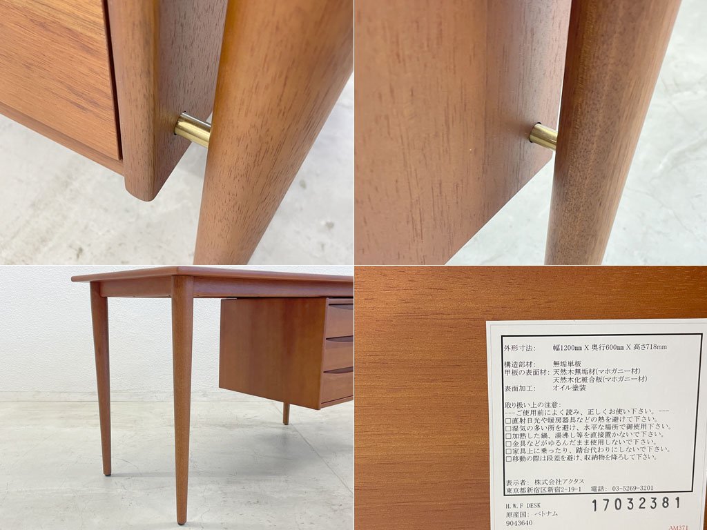 アクタス ACTUS ハンドワークファニチャー H.W.F DESK 片袖デスク DESK マホガニーカラー デンマークデザイン 廃盤 〓