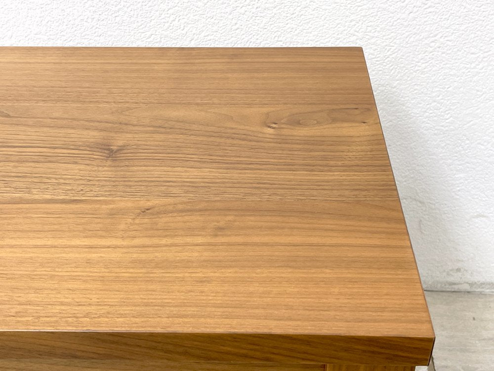 幅120センチと標準的なサイズ、ウォールナット材による上質なダークブラウンがモダンな雰囲気を引き立てます。