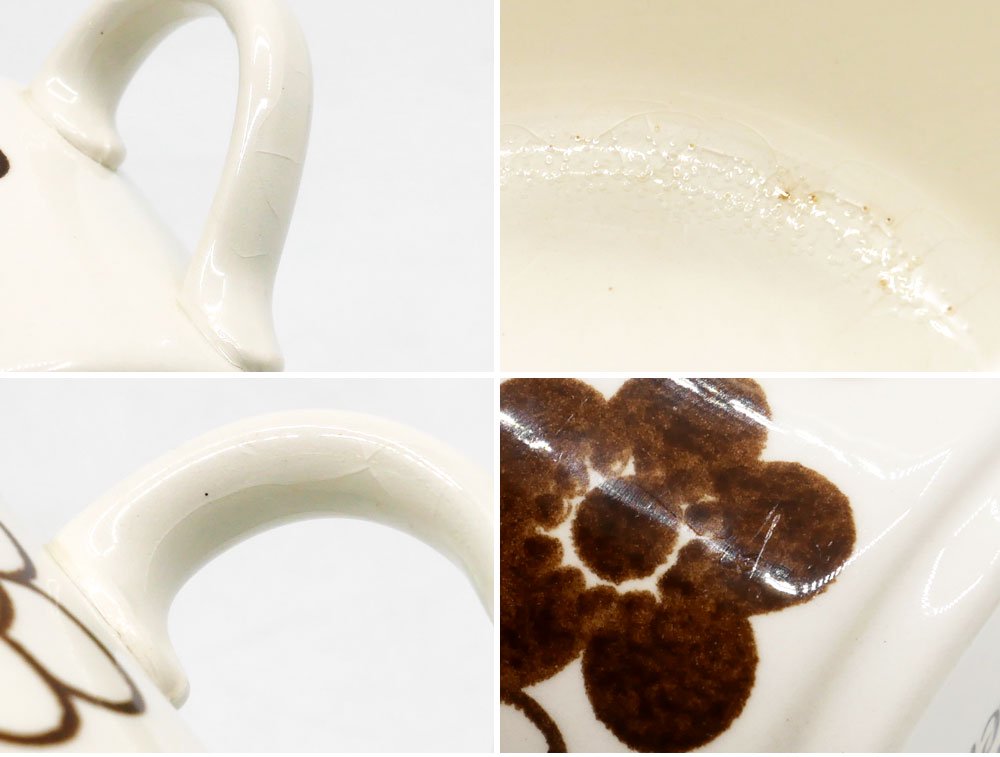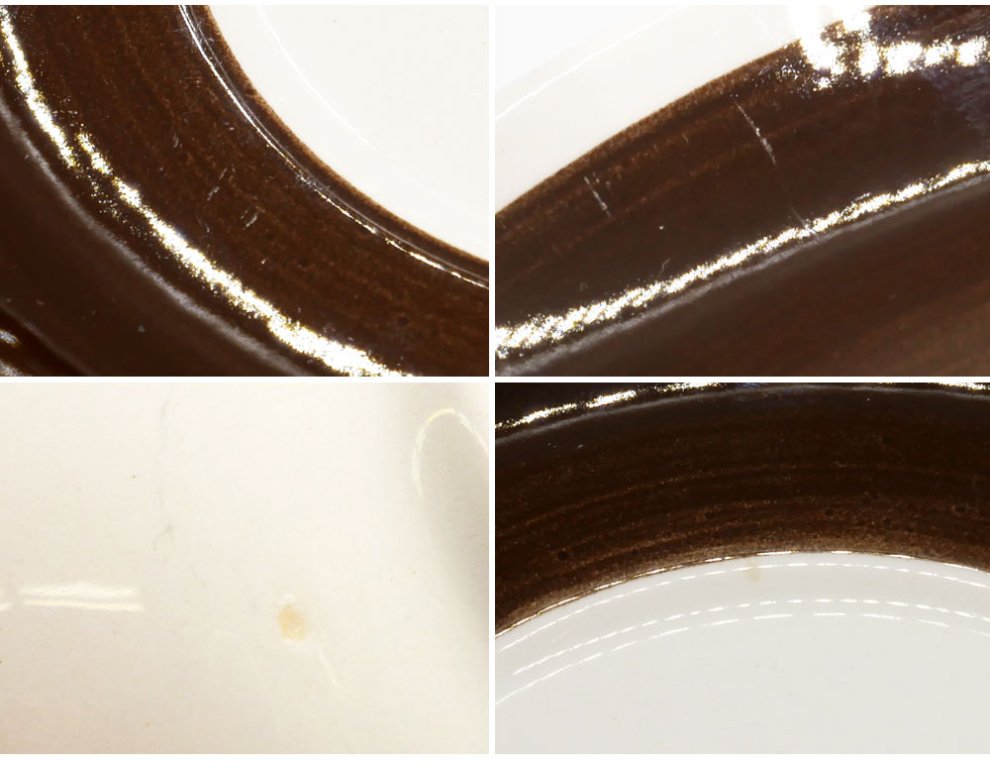 こちらはビンテージのお品物です。使用に伴い、擦れや傷などビンテージ相応のコンディションとなっております。またカップ内部に貫入や気泡、ザラツキがございますが製造時のものになります。その他箇所にも窯傷などの製造痕がございますが、使用上問題となる大きなダメージはございません。これからも十分実用頂けるコンディションを保っております。