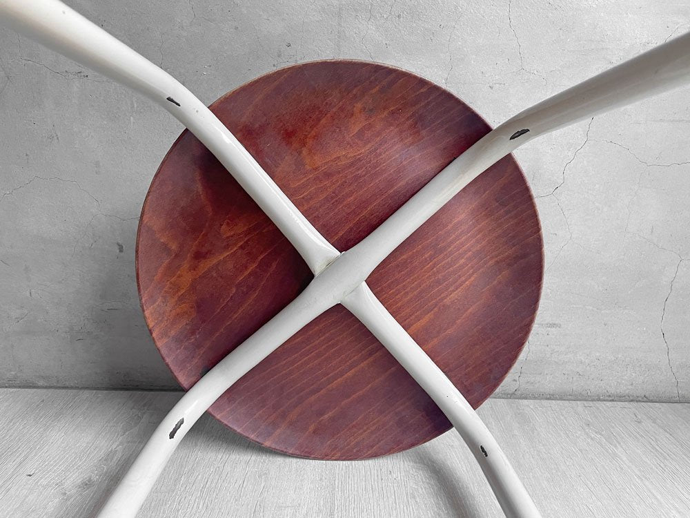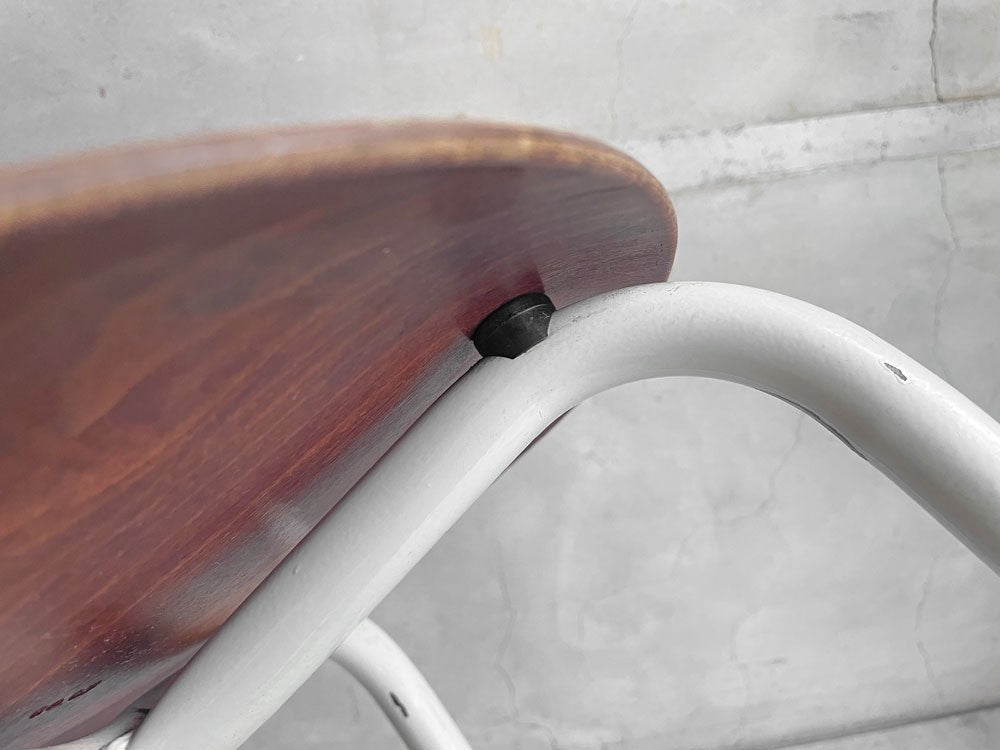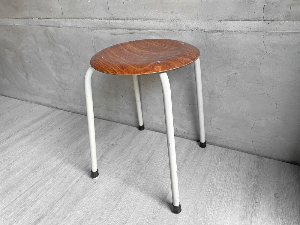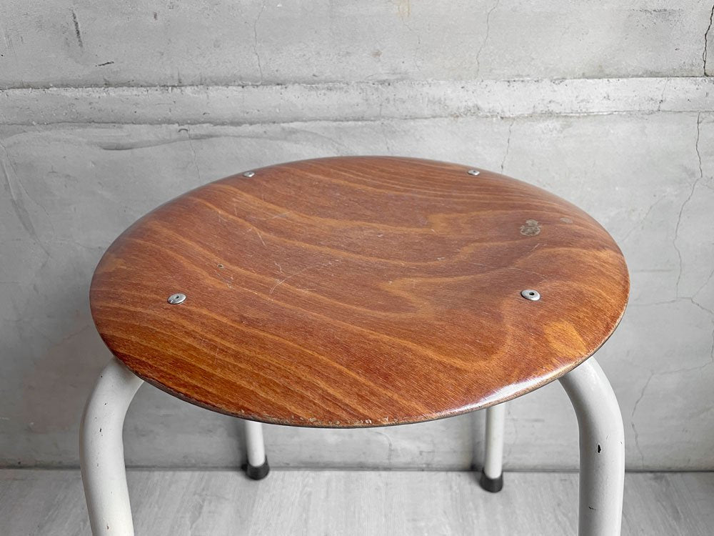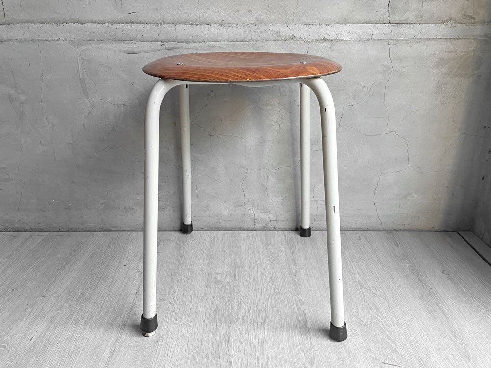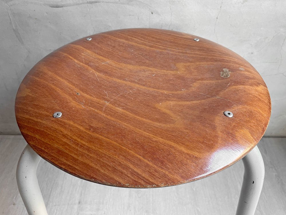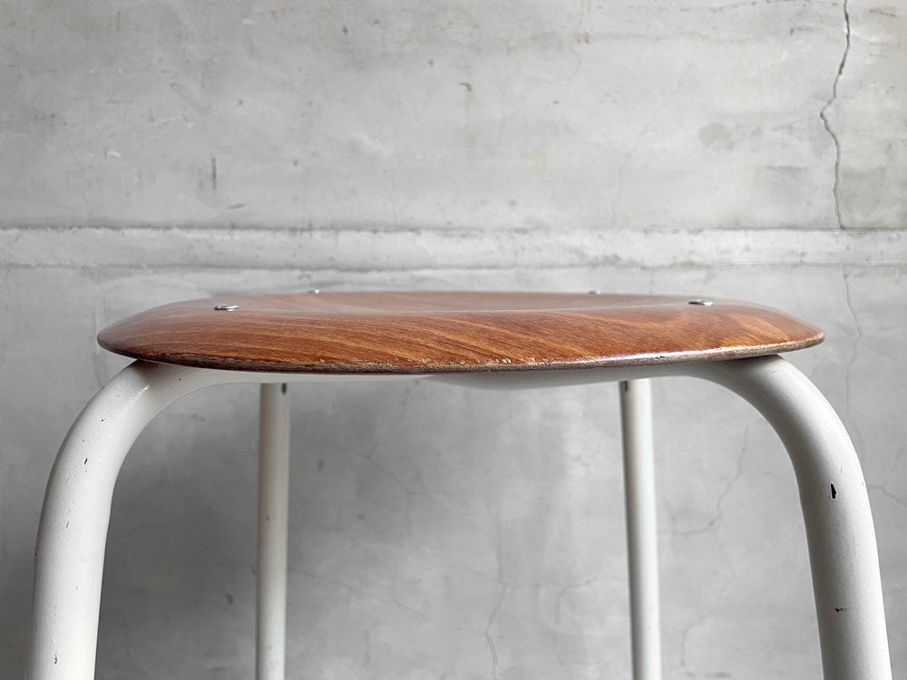 ビンテージ Vintage ウッドシート × スチールレッグ スツール スタッキング プライウッド アイボリー インダストリアル D ♪
