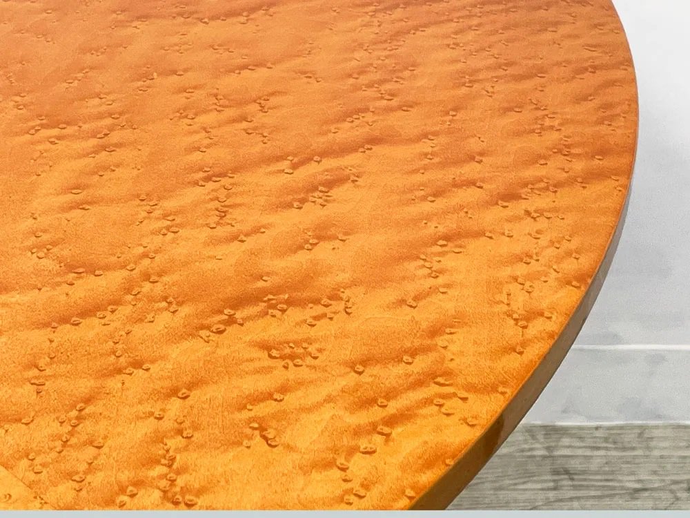 バーズアイメープルは、丸い玉がつらなった模様やうず巻き状の杢目「鳥目杢」により、鳥の目のような神秘的な表情が全面に浮き出た非常に稀少価値の高い木材。通常の20~50倍という価格で取り引きされる高級家具材です。