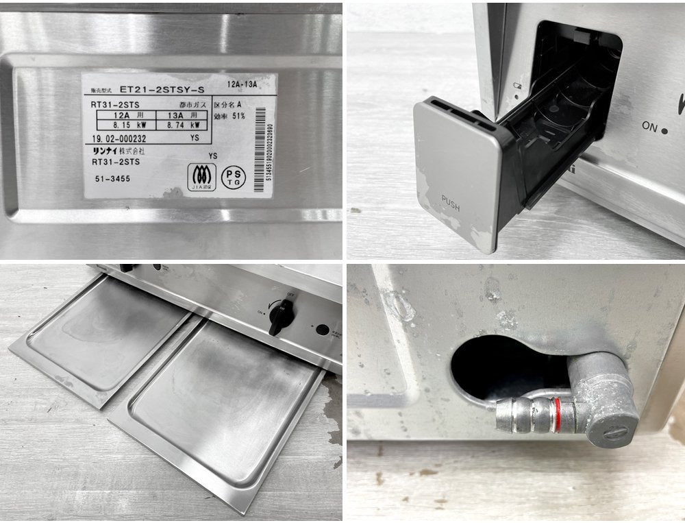 リンナイ Rinnai バーモ Vamo 強火力 ガステーブルコンロ 2口 都市ガス 2019年製 RT31-2STSY ステンレス製 取扱説明書付き ●