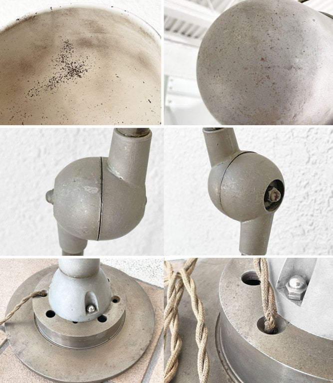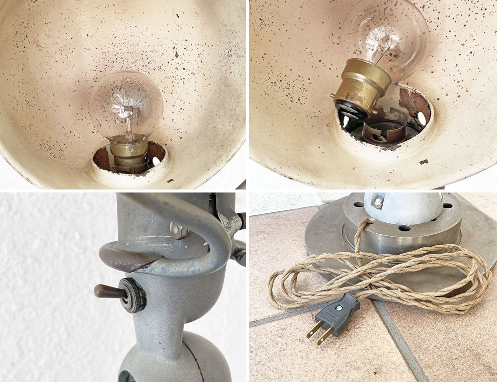 こちらはビンテージ品です。使用や経年に伴う傷、打痕、取り切れない汚れ、スチール部の錆やくすみ、シェード内部のペイントのロス等が御座いますがビンテージアイテムならではの風合いとしてお楽しみ頂けるかと思います。また電源コードの被膜にやや使用感が見られる他、電球の着脱には僅かに力を要しますが、点灯に問題は御座いません。各部アームの動作に不具合はなく、これからも気持ちよくお使い頂けるコンディションとなっております。