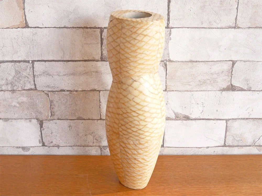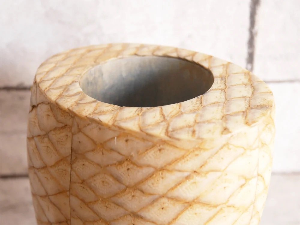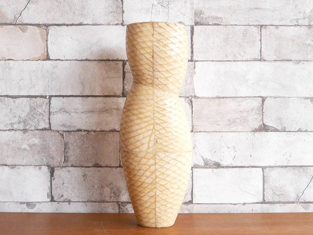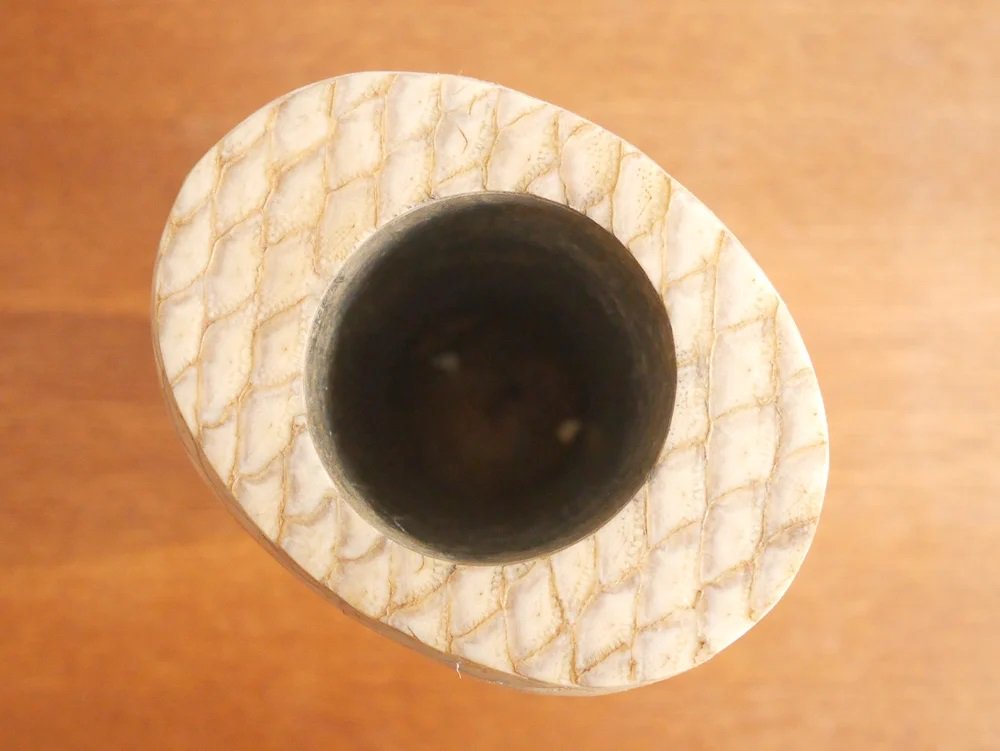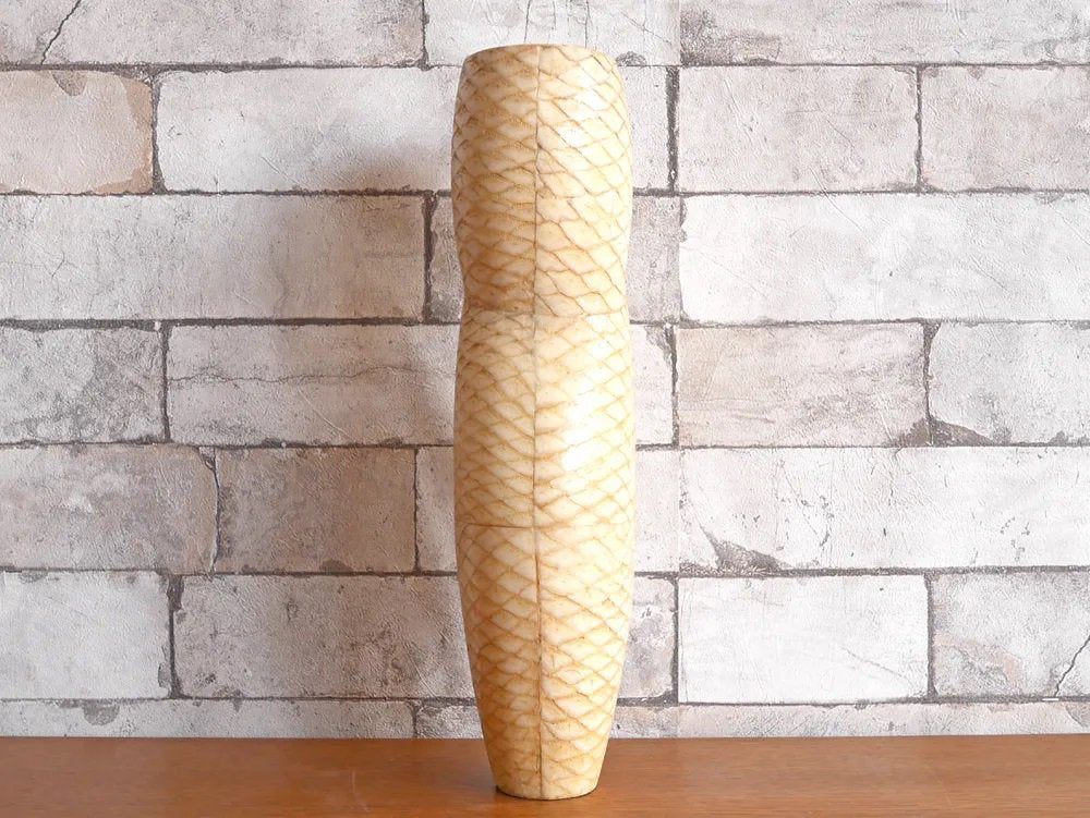 R&Y Augousti リア&イオーリ・オーグスティ フラワーベース ヘビ革 × マホガニー ビンテージ 花瓶 パリ ●
