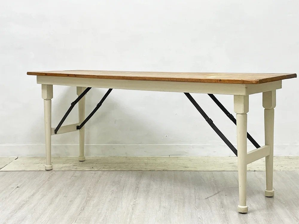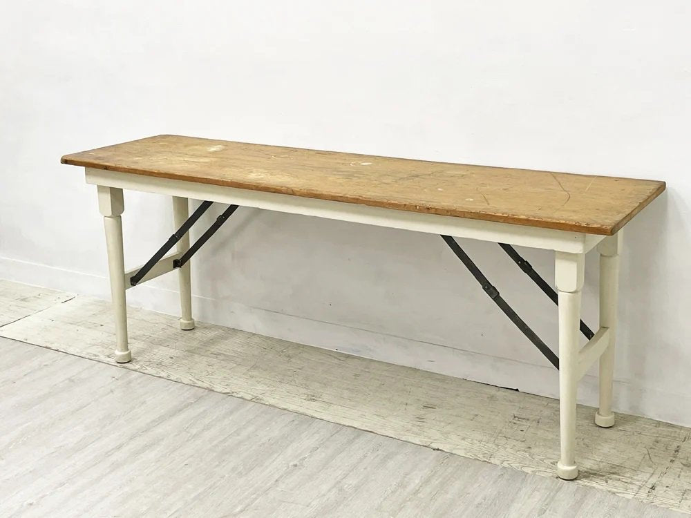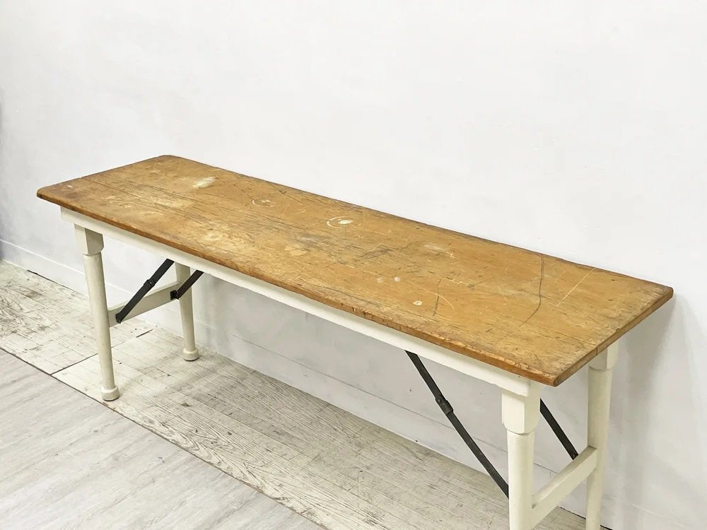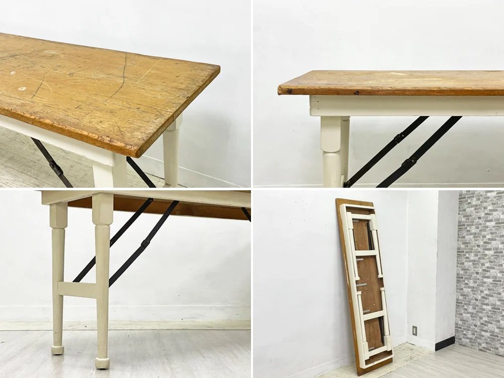 ビンテージ Vintage フォールディングテーブル 折り畳み式 コンソールデスク W175.5cm アイボリー ペインテッド シャビーシック 店舗什器 ●