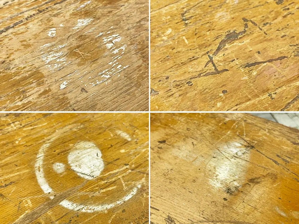 こちらはビンテージ品となっております。経年に伴う全体的な擦れや傷、打痕、色褪せ、ペイントロスや染みなどの経年感、古材特有のダメージ感などがございます。ビンテージ特有の風合いとしてお楽しみくださいませ。機能に問題あるようなダメージはございませんが、古材特有のダメージや割れ