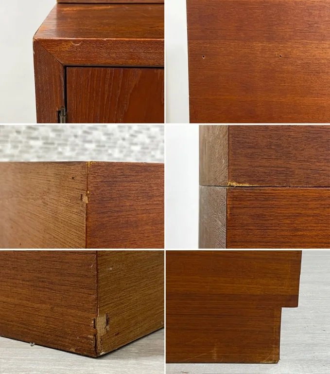 また、マグネットキャッチのプラスチック部の割れや突板の欠け、ネジ痕など、若干の使用感はあるものの、ご使用に問題となるような不具合はございません。これからのビンテージ家具ならでは風合いをお楽しみ頂きながら実用頂けるコンディションを保っております。