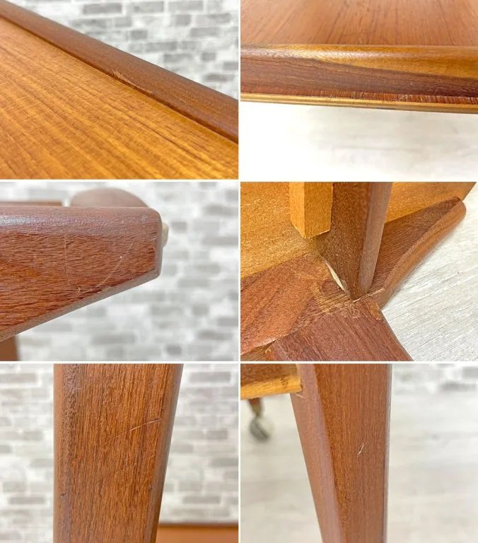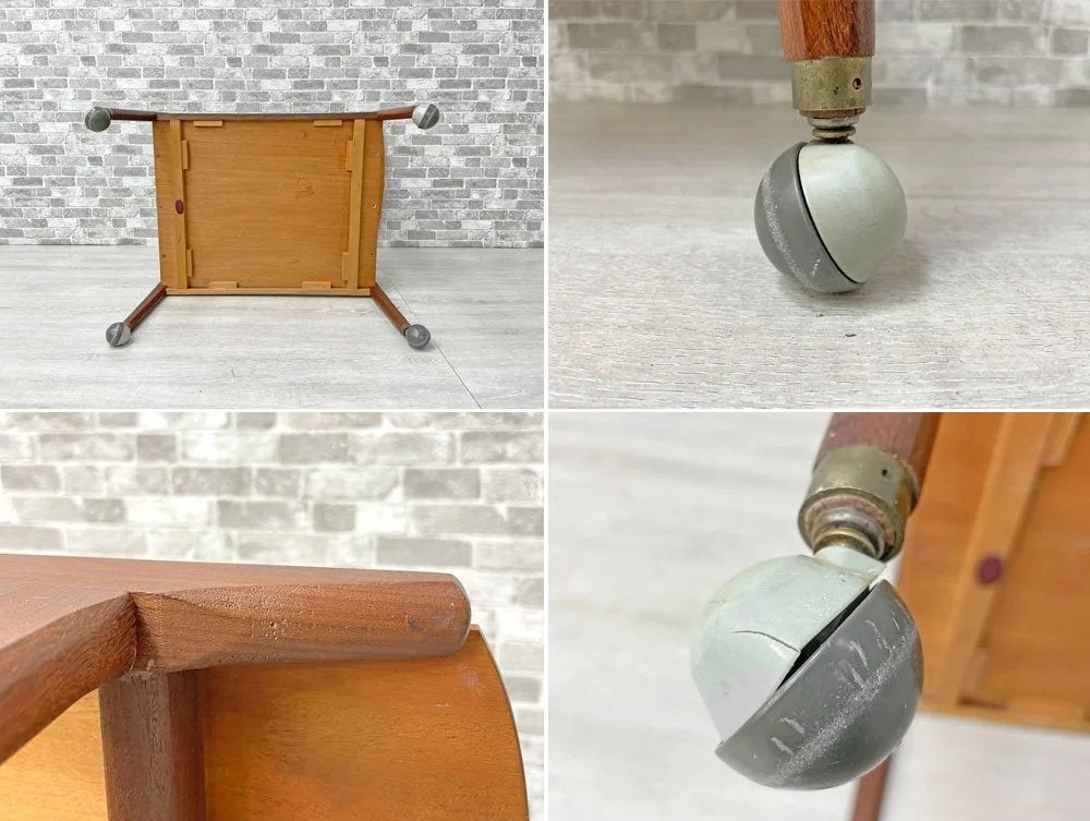 こちらはビンテージのお品物になります。使用に伴い、擦れや線傷、打痕傷がございます。また、キャスターには、一部割れが生じており、強い力が加わるとダメージが広がる恐れがございますので、予めご承知おき下さいませ。以上、ビンテージ相応のコンディションではあるものの、通常使用に支障をきたすような不具合はなく、古いものながらこれからも十分実用可能なコンディションを保っております。