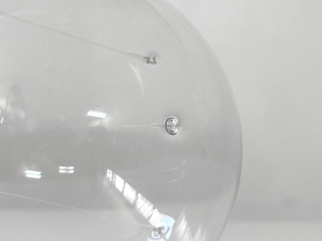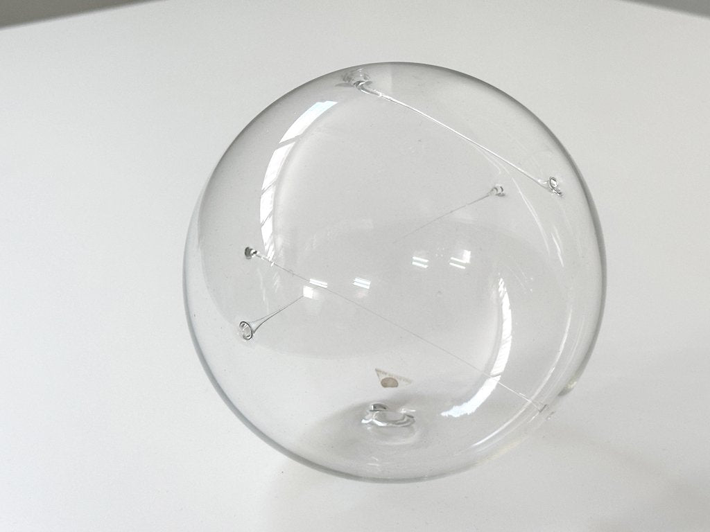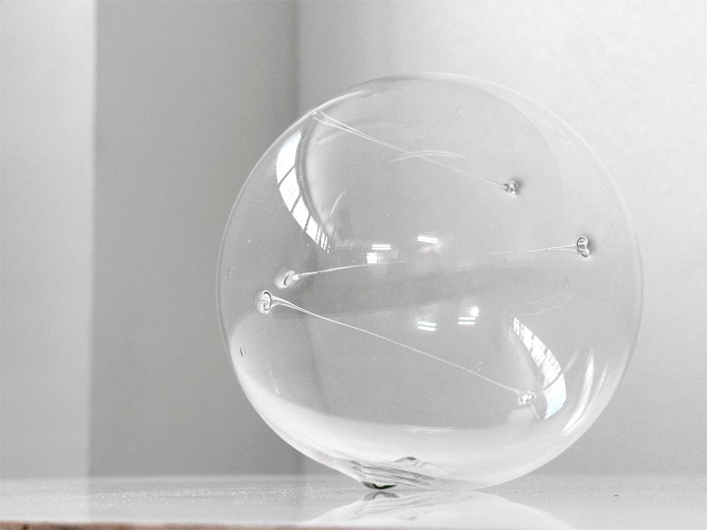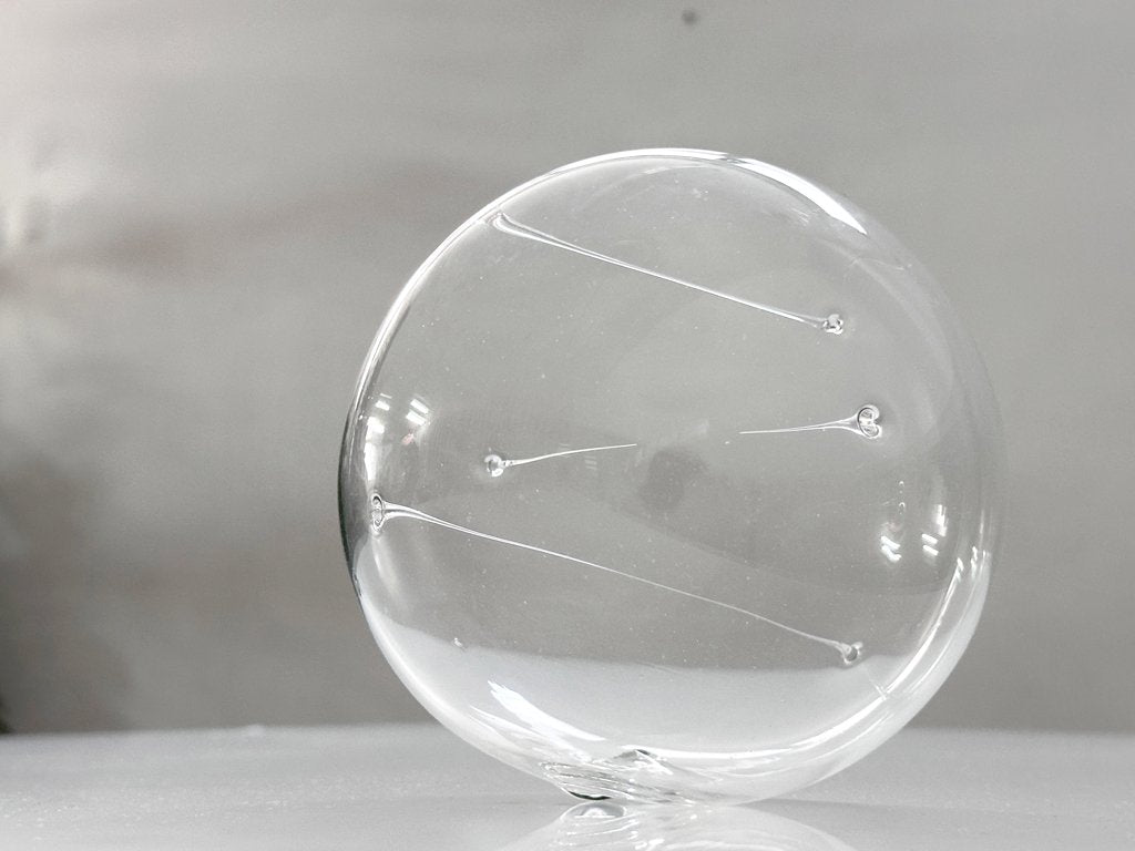 型吹きで成型されており、ボール内部には糸を引いたガラスの装飾が3本。繊細な造りから、神秘的な美しさが感じられます