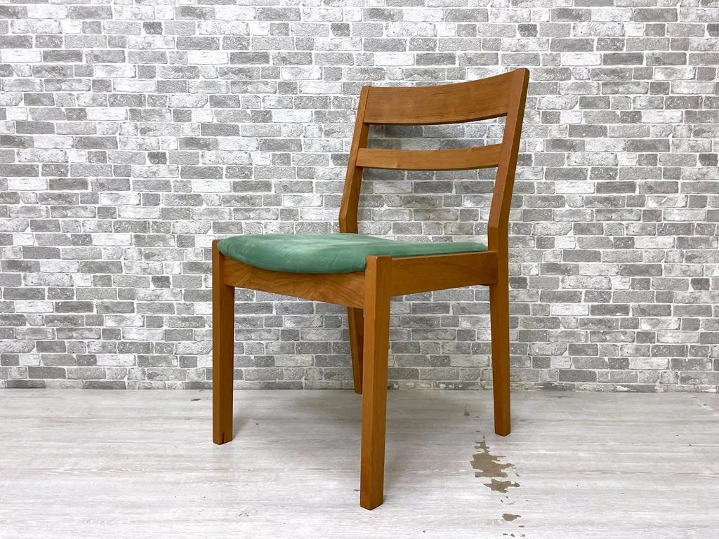木蔵 BOKURA ニコワイド nico-wide ダイニングチェア ブラックチェリー無垢材 ファブリック 定価¥33,990- グリーン B ●
