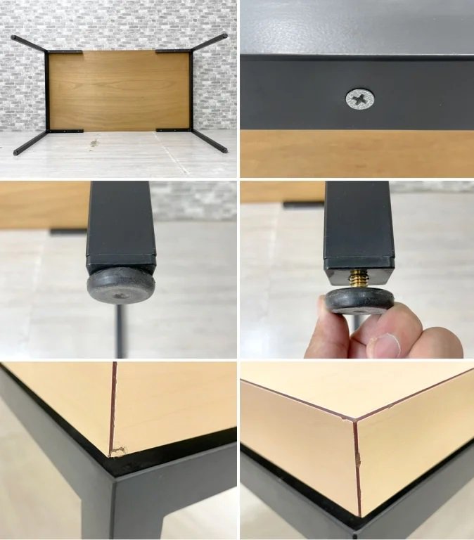 天板の角に化粧板の剥がれ、脚部に線傷が複数あるものの、著しく目立つようなダメージは無く、中古品としては概ね良好なコンディションを保っております。