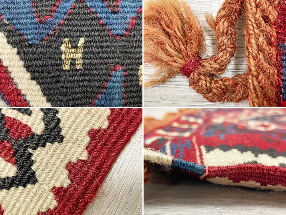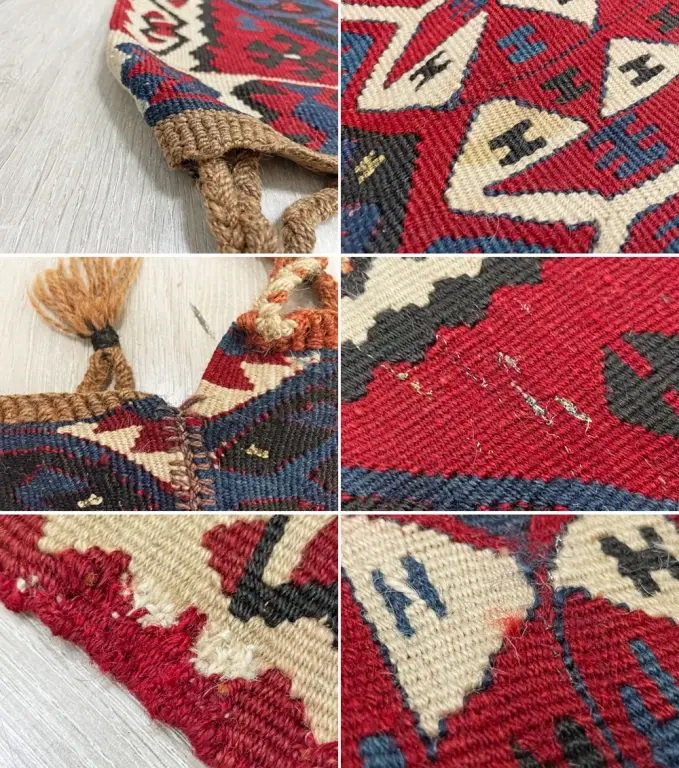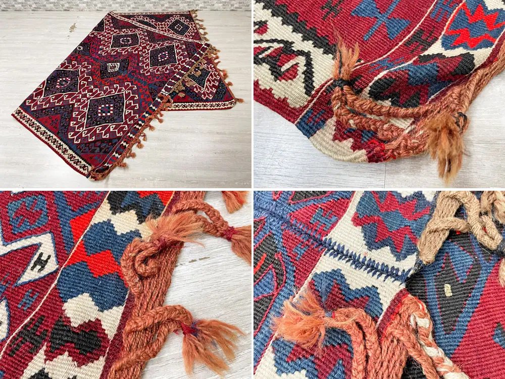 詳細につきましてできる限りお調べしておりますが、トライバルラグ、キリムの専門知識が不足しておりますので、商品ページのコメントやコンディション、お問い合わせにつきましても専門店のような十分な説明が出来ない場合がございます。