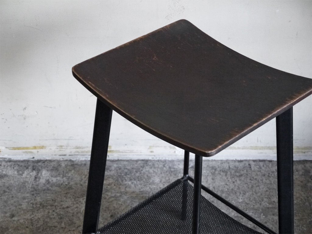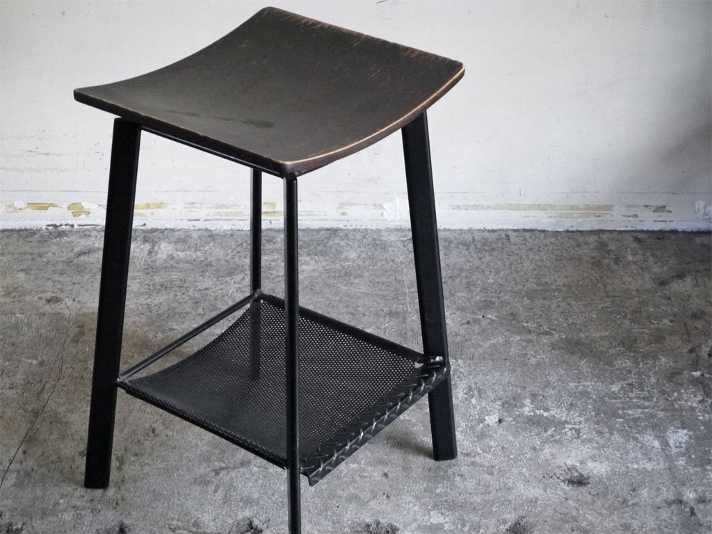 インダストリアル デザイン industrial design ハイスツール ウッドシート パンチングメタルシェルフ H64.5cm ■