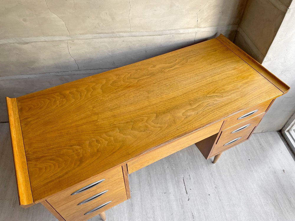 ブロイヒル Broyhill スカルプトラ Sculptra 両袖デスク ウォールナット材 USビンテージ ミッドセンチュリー 米国 ♪