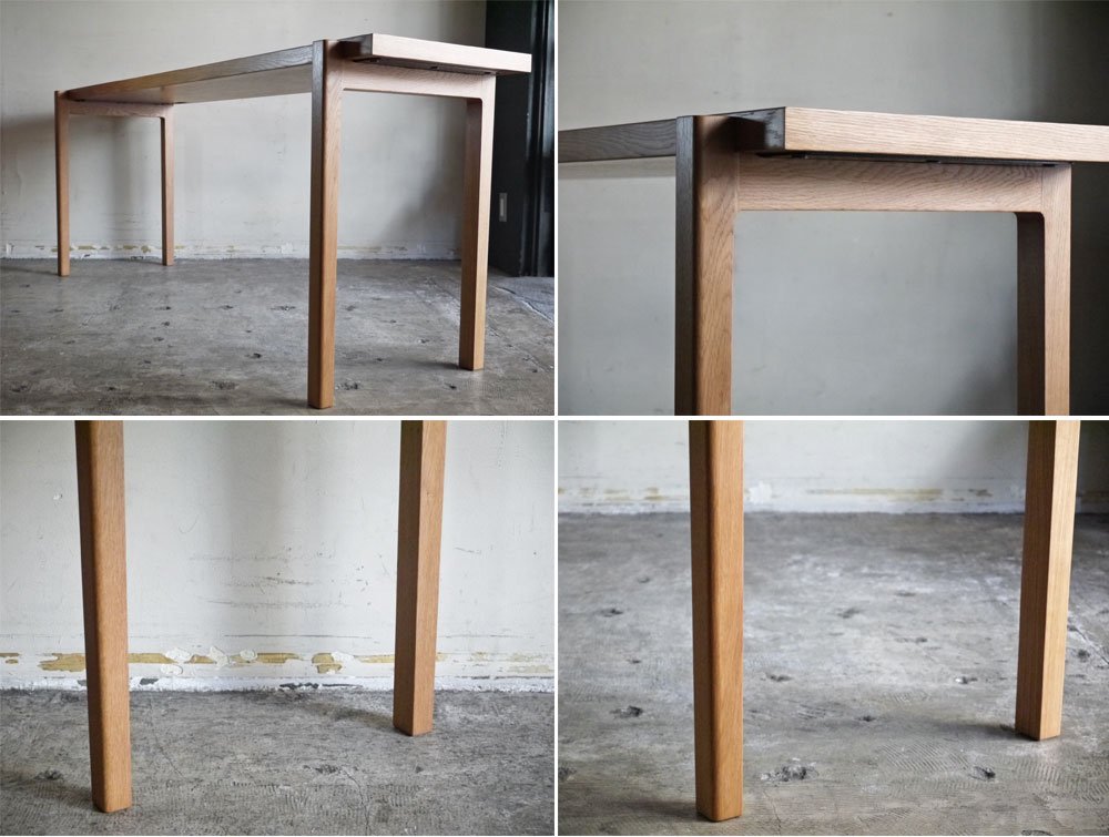 使用に伴い、天板に細かな擦れや線傷、縁や脚部に軽微な打痕が見受けられます。