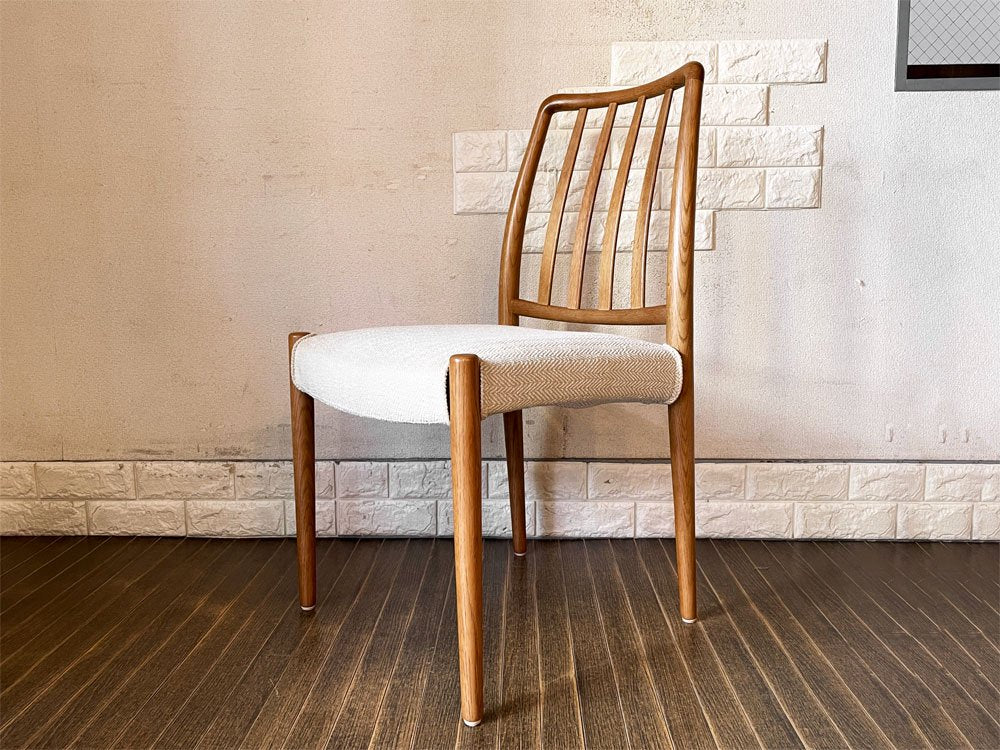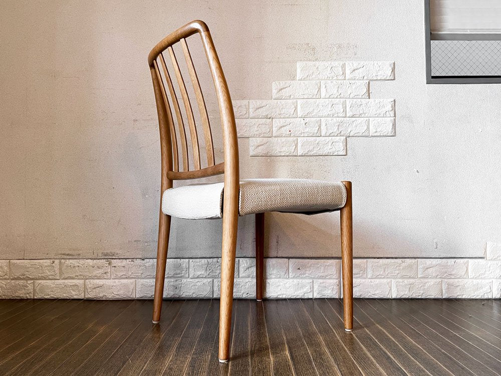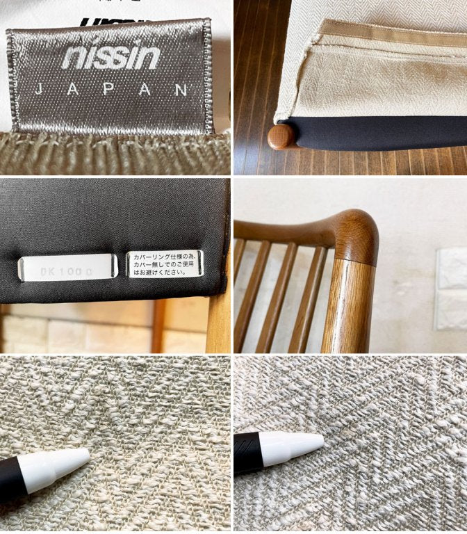 日進木工 NISSIN グロウ GROW ダイニングチェア 縦格子 オーク材 ファブリック座面 カバーリング ホワイト系 定価¥61,600- ◎