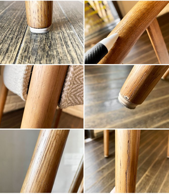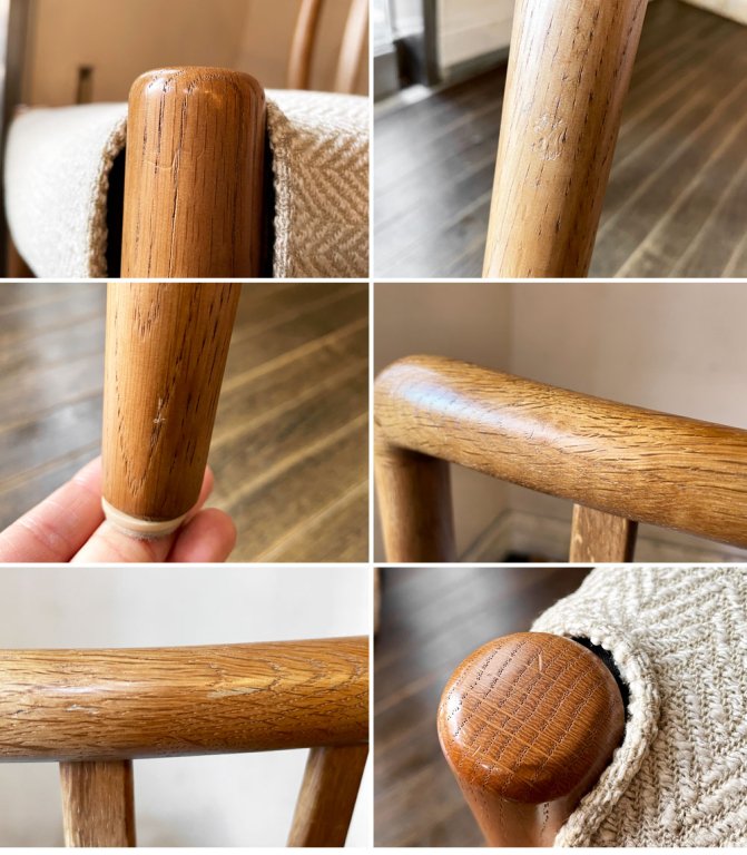 使用に伴い、フレームには擦れや打痕、線傷、ファブリックには僅かなシミなどが見受けられますが、がたつきやぐらつきなど使用上問題となる大きなダメージございません。これからも気持ちよくお使いいただけるコンディションを保っております。