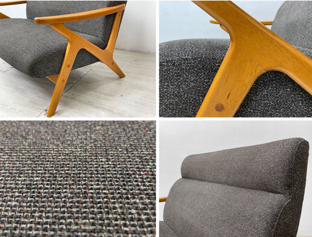 ローマ数字のファイブ(V)を連想させるフレームが目を惹き、明るい木色のハックベリー材とブラウンカラーのミックスファブリックの組み合わせがレトロモダンな雰囲気を放ちます。