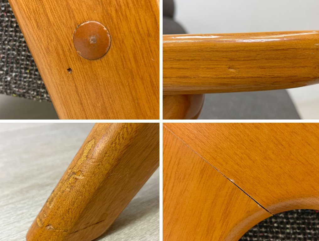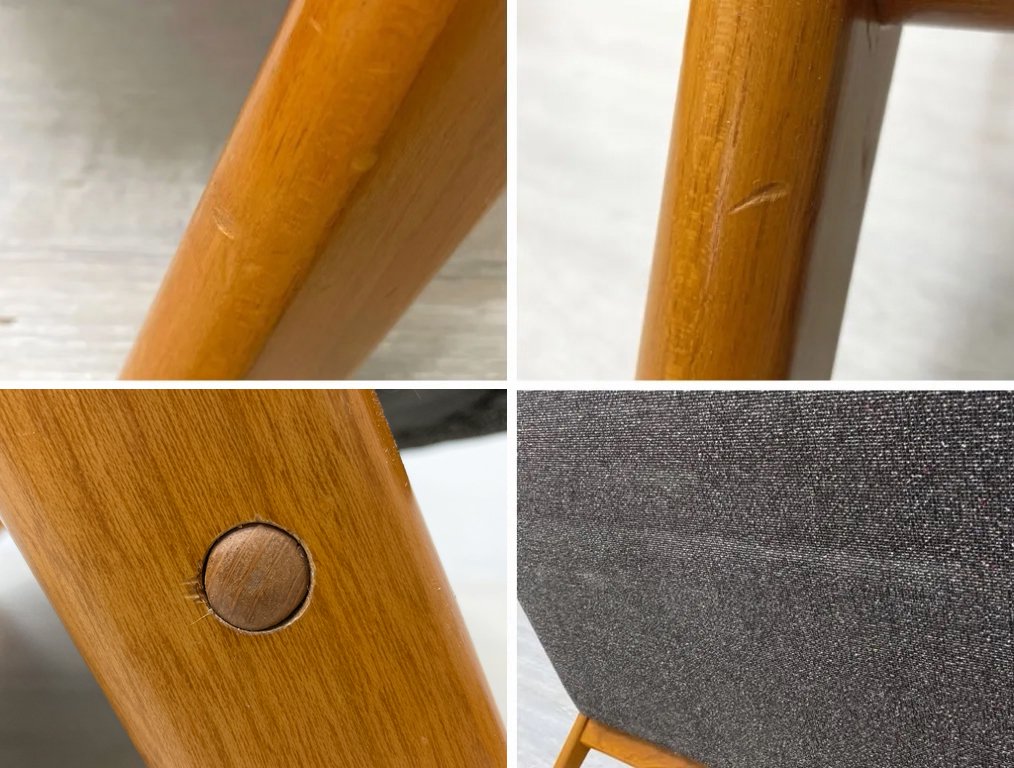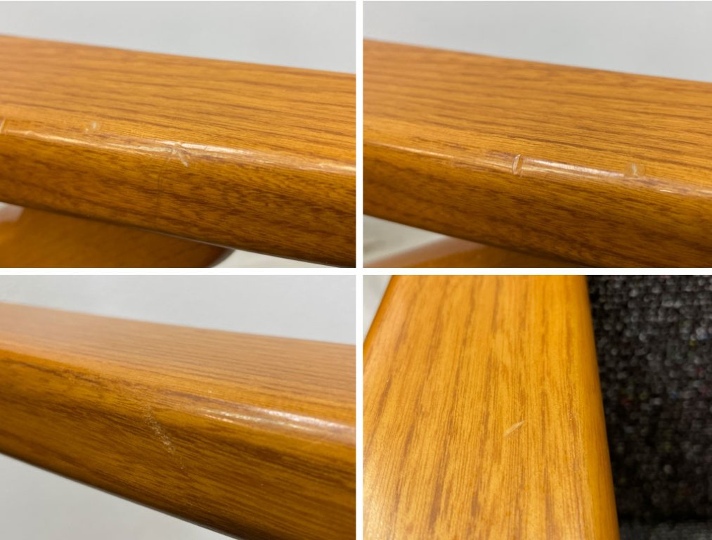 フレームの継ぎ目に僅かな隙間がございます。ダボの一部を付け替えておりますがグラつき等の大きなダメージはなく、これからも安心してご使用頂けるコンディションを保っております。