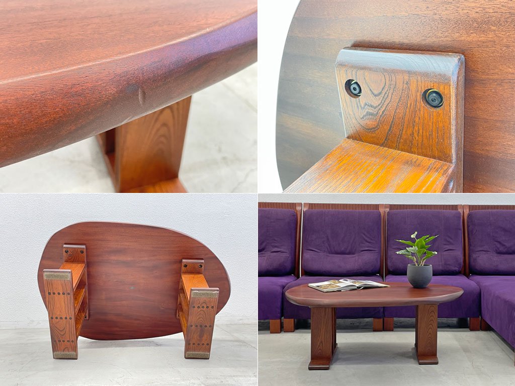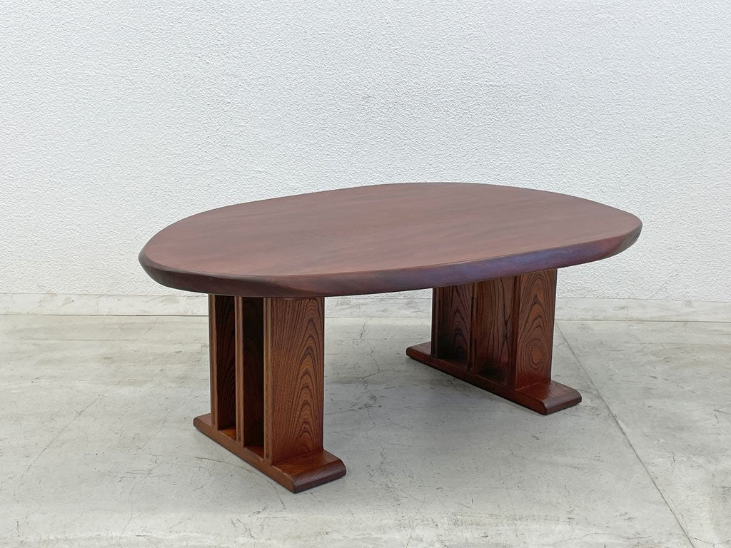 胡桃 ウォールナット無垢材 たまご型 ローテーブル コーヒーテーブル センターテーブル 文机