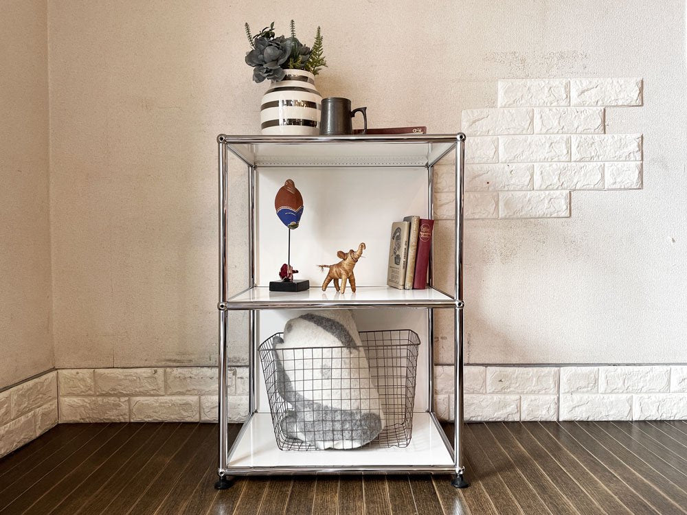 ユーエスエムハラー USM Haller モジュラーファニチャー ハラーシステム キャビネット オープンシェルフ 1列2段 ピュアホワイト サイドパネルなし スイス ◎