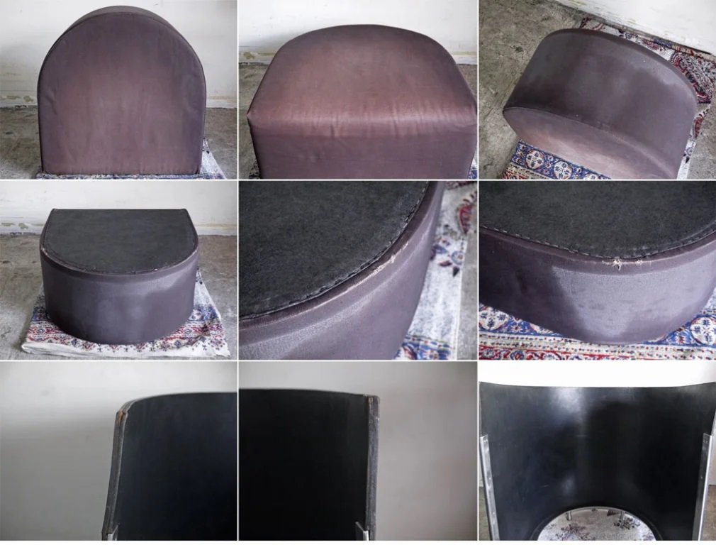その他、シートには擦れと色褪せ、裏面にほつれと小さな穴、背面のレザーに接触する部分に変色が御座います。