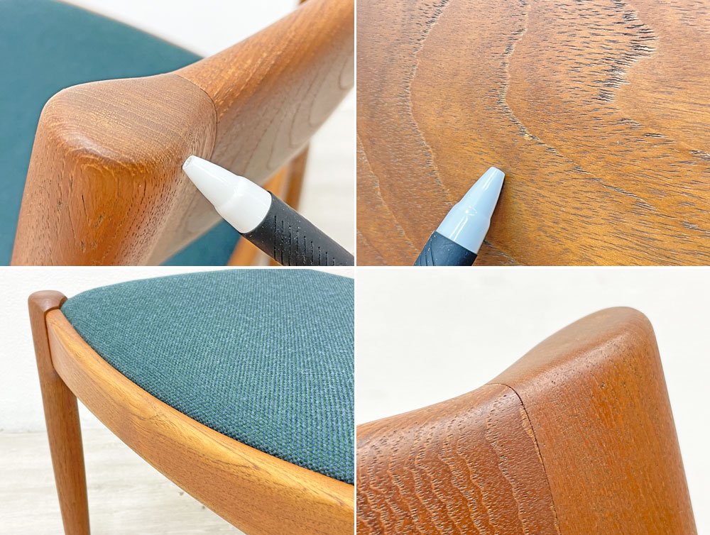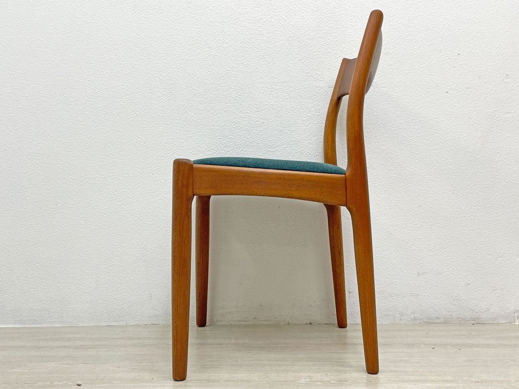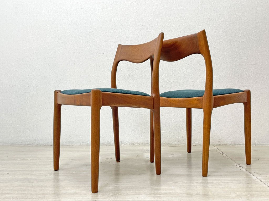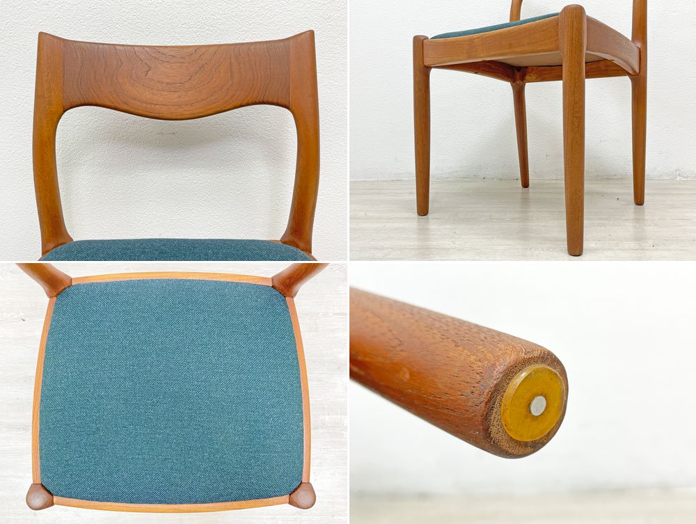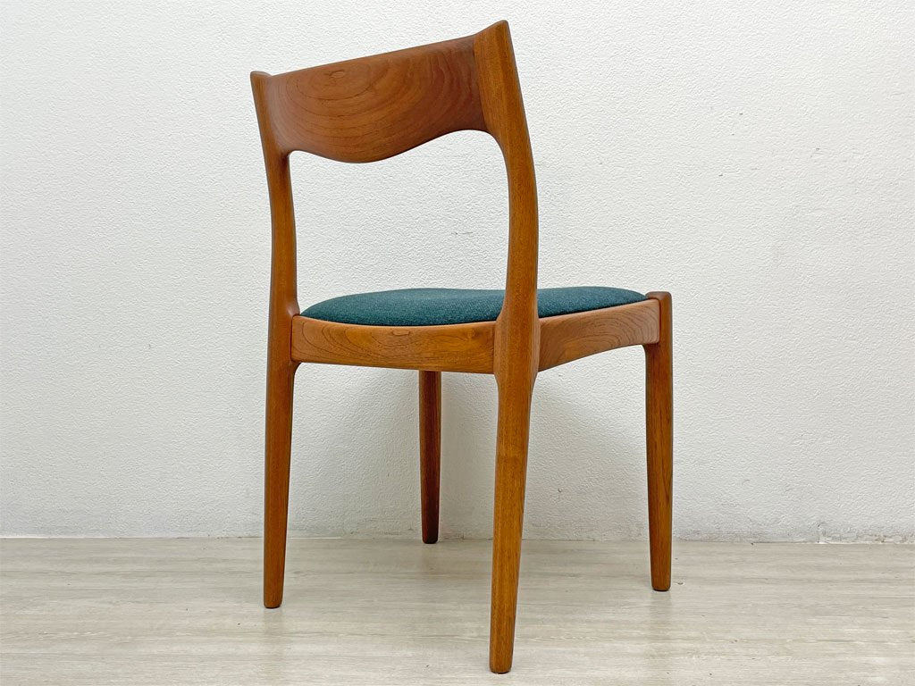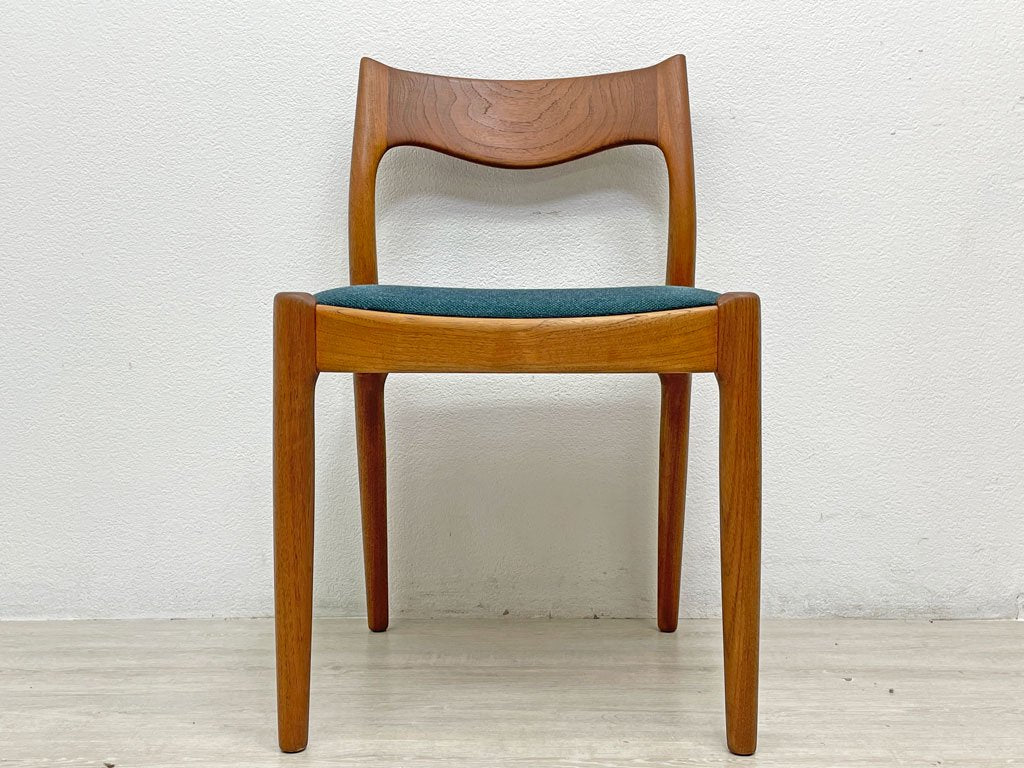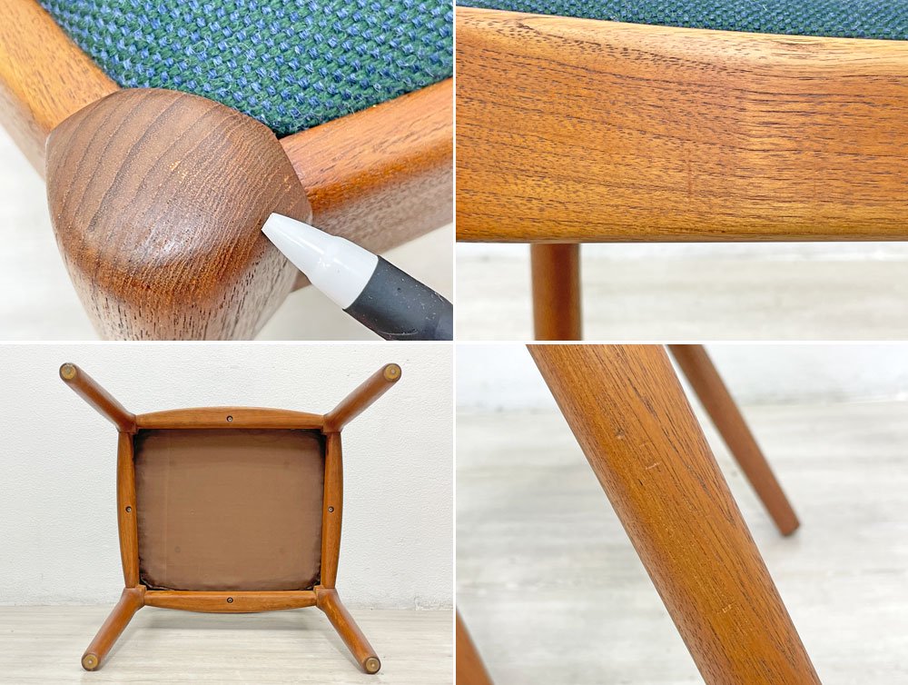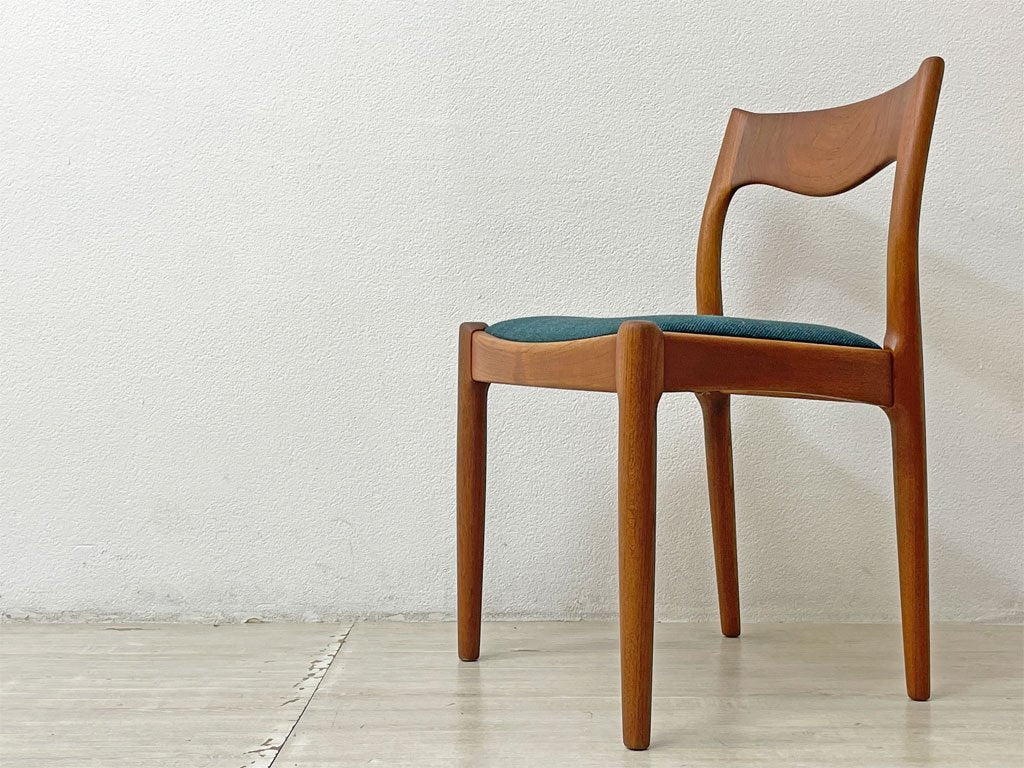 JK Mobler チーク無垢材 ダイニングチェア Juul Kristensen 60’s 北欧 ビンテージ ブルーグリーン色MIXファブリック 新品NC生地張替済 B ●