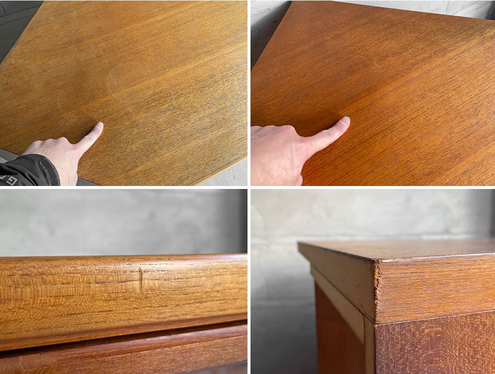 天板にやや目立つ輪染みのほか、全体的に細かな打痕や擦り傷、薄染み、日焼けが見受けられます。