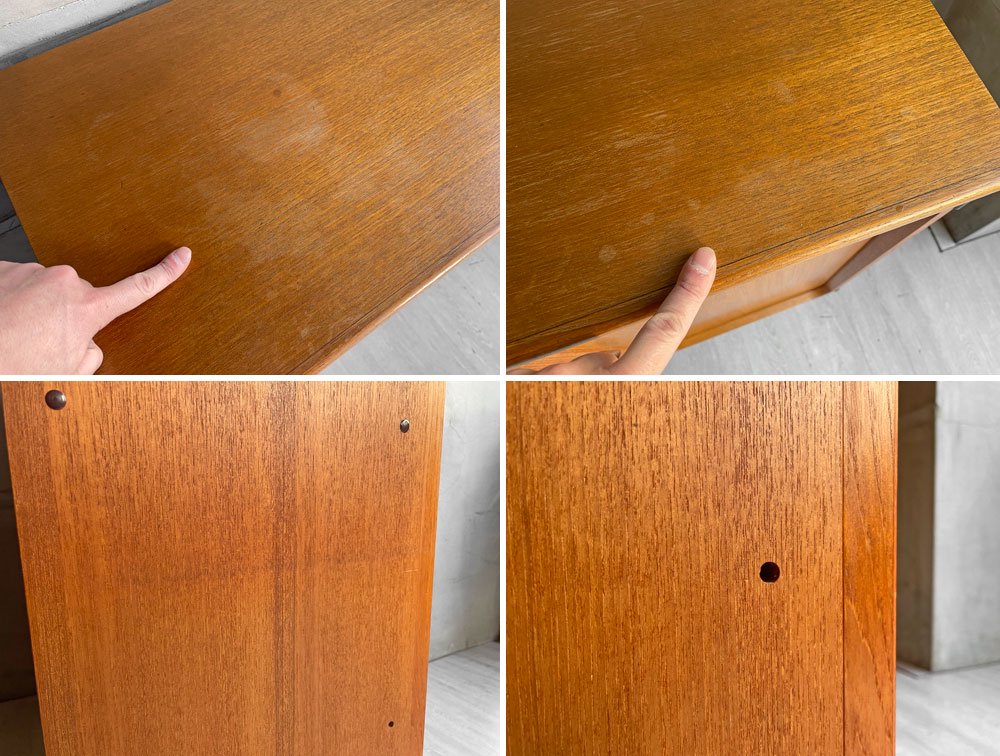 天板にやや目立つ輪染みのほか、全体的に細かな打痕や擦り傷、薄染み、日焼けが見受けられます。