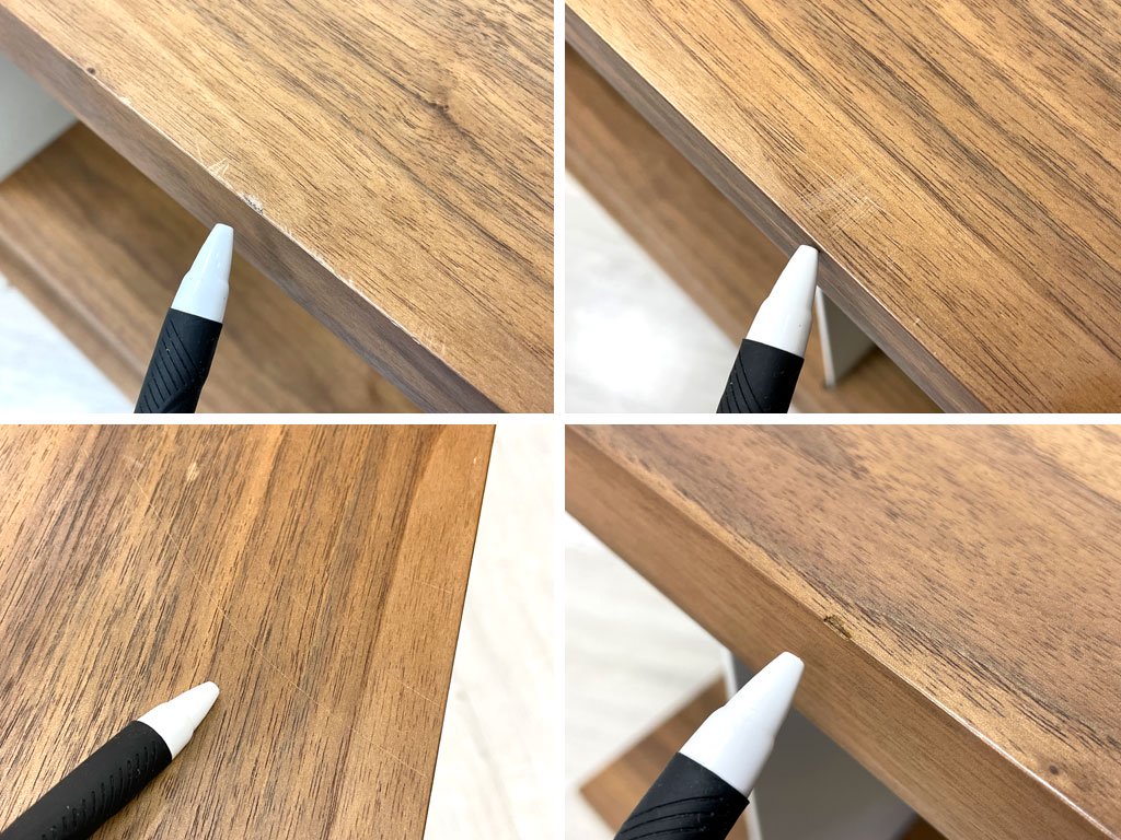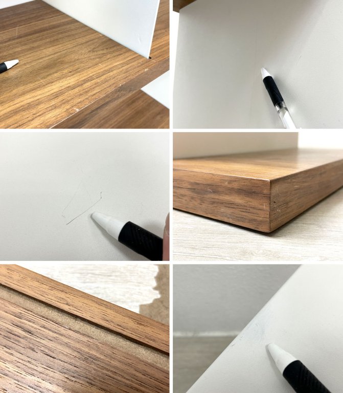 使用に伴う細かな擦れ傷や打痕、溝付近の小さな突板の剥がれ、スチール部のスクラッチなどはございますが、いずれも大きく目立つものではございません。ご使用に問題となるダメージの見られない、USED品として概ね良好なコンディションを保っております。引き続き気持ち良くお使い頂けます。