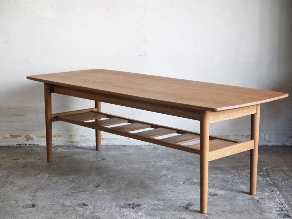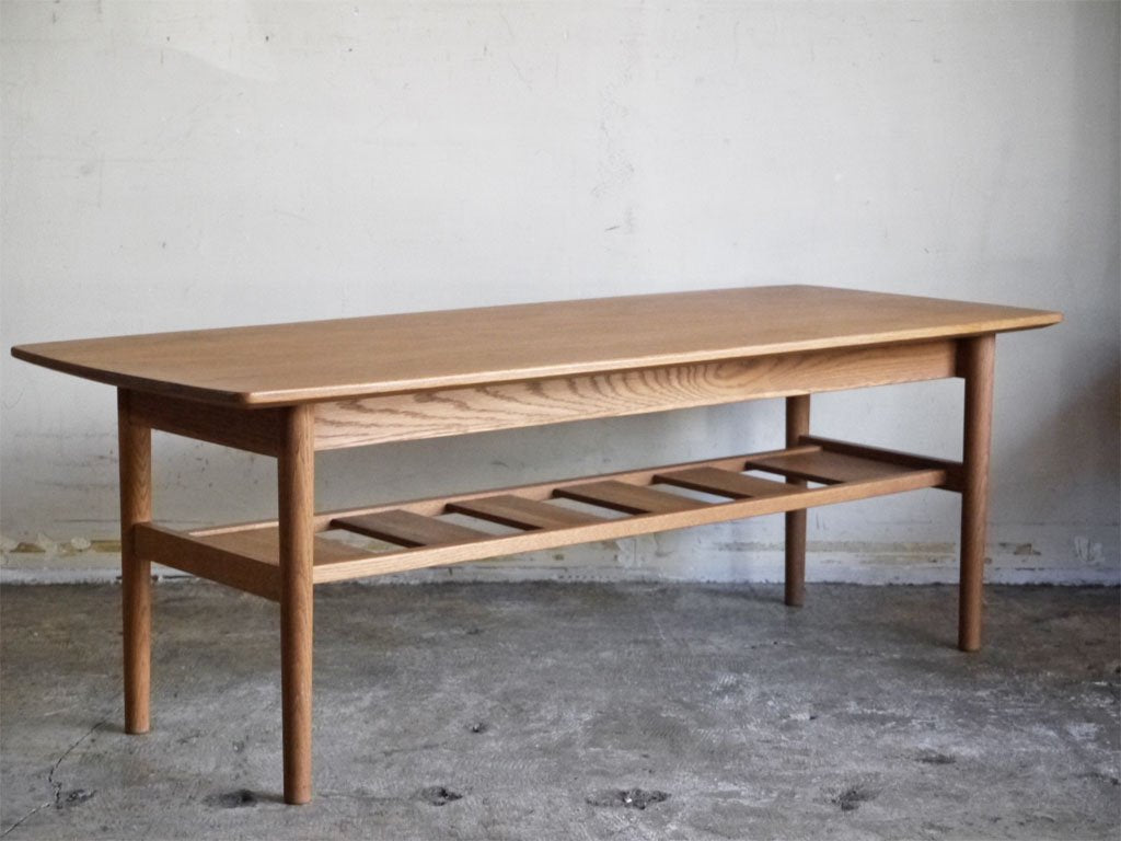 オーク材を用いたシンプルなデザインのローテーブル。