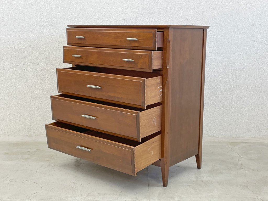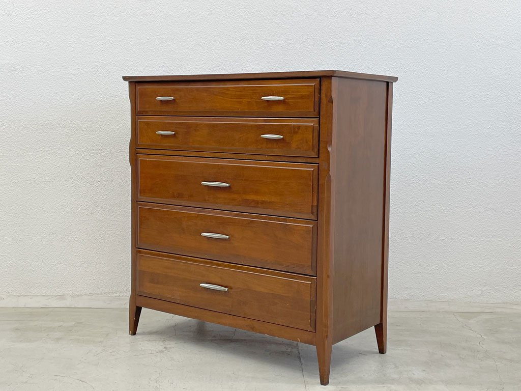 B.P.John Furniture USビンテージ 木製 5ドロワー トールチェスト ハイチェスト デコラトップ 米軍家具 ミッドセンチュリー 〓
