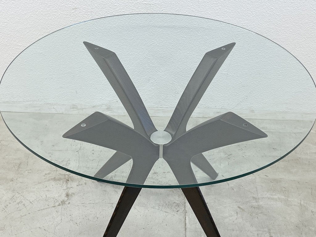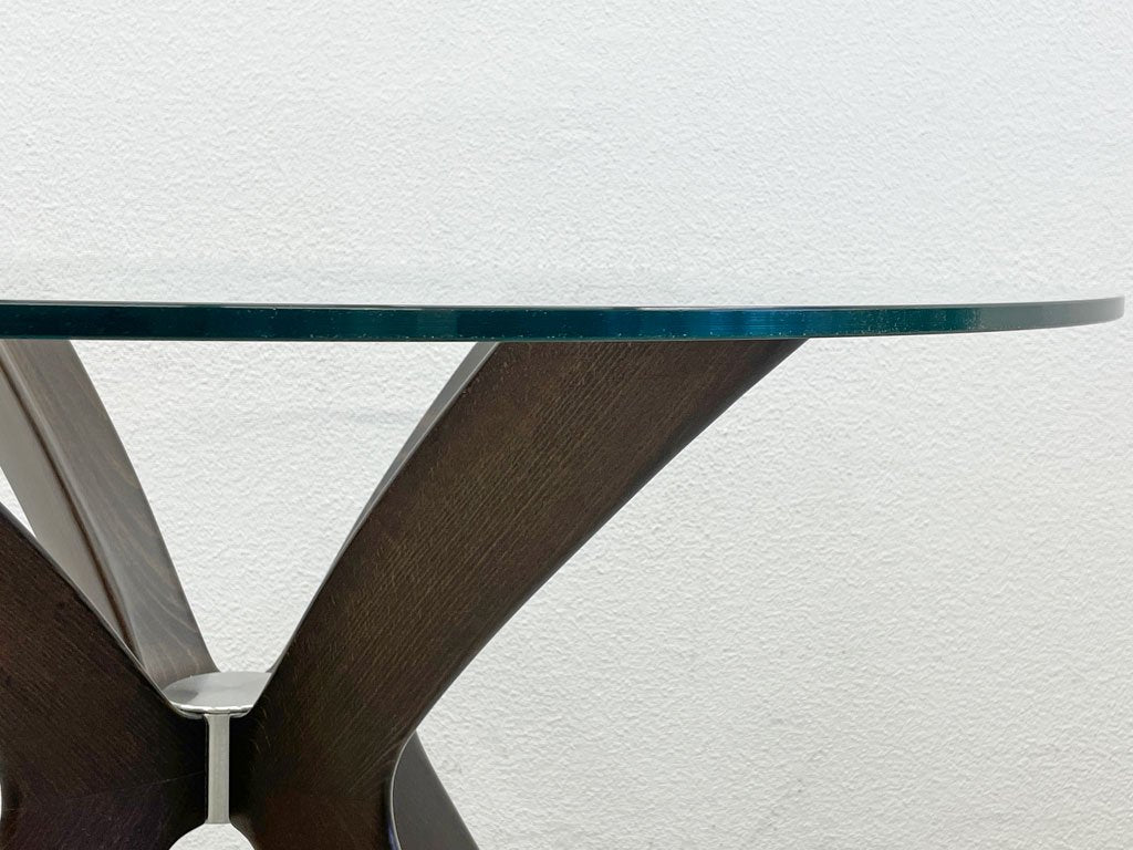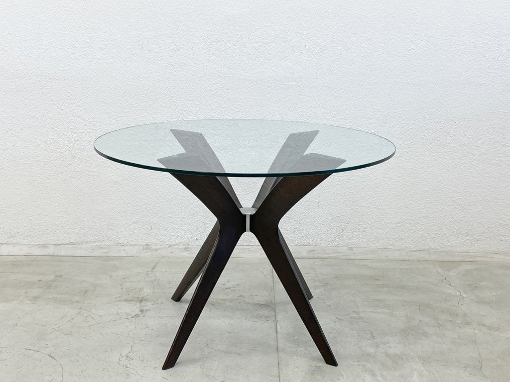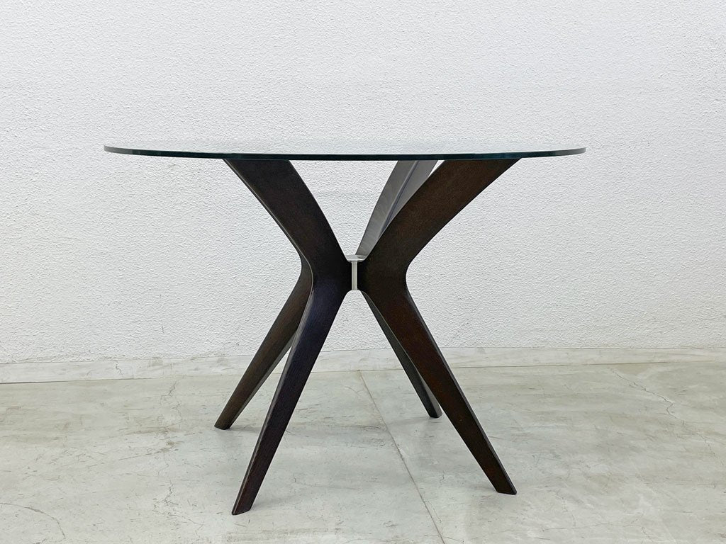 クリアガラス ラウンドテーブル ダイニングテーブル ビーチ材 ダークブラウン イタリアモダン