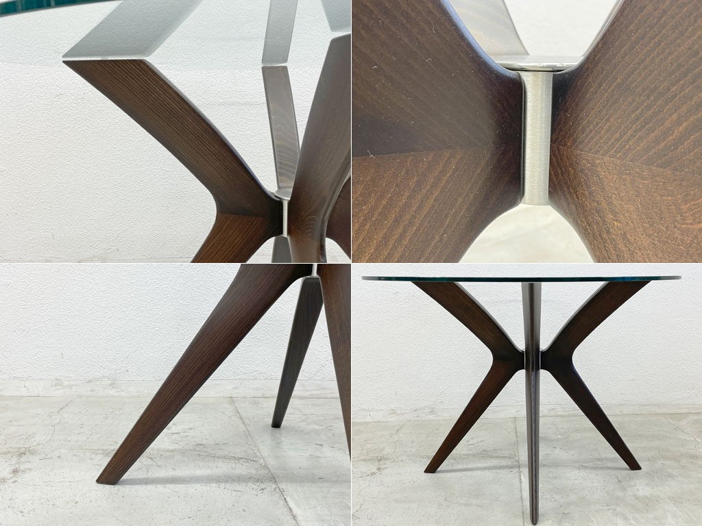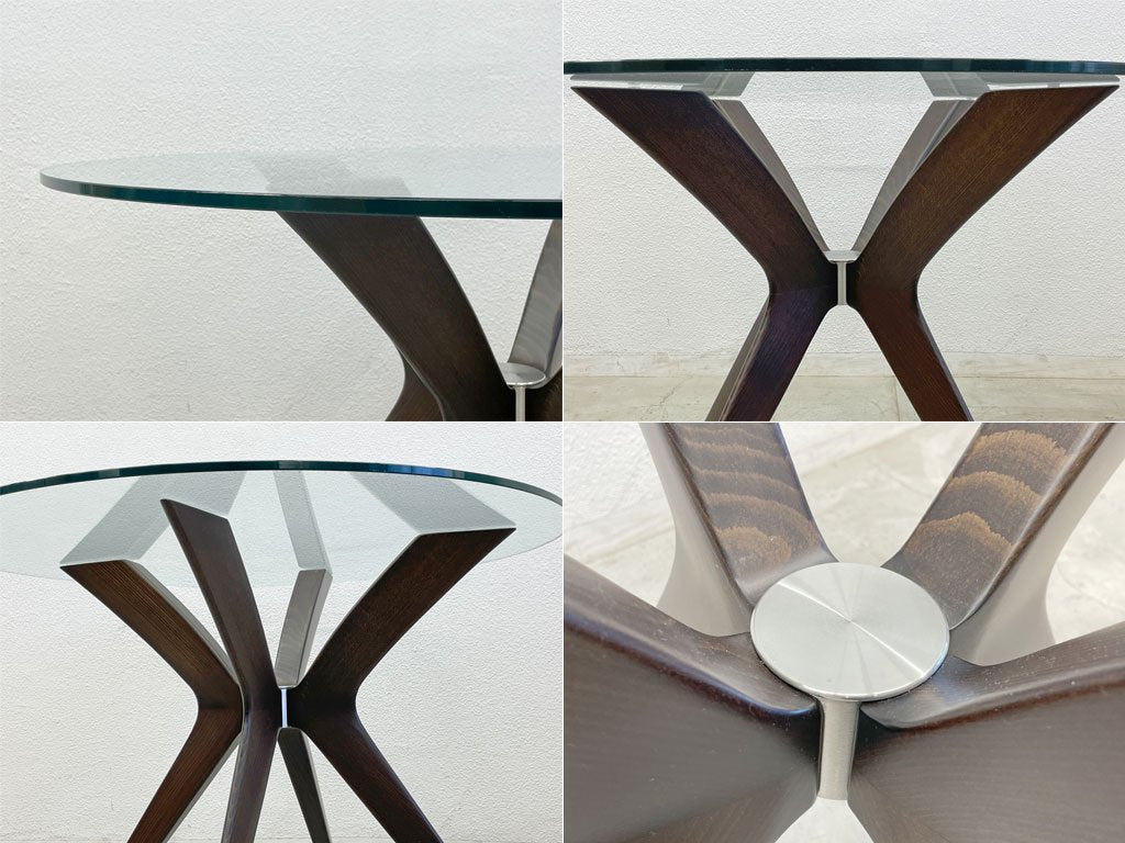 カリガリス Calligaris トーキョー Tokyo クリアガラス ラウンドテーブル ダイニングテーブル ビーチ材 ダークブラウン イタリアモダン 〓