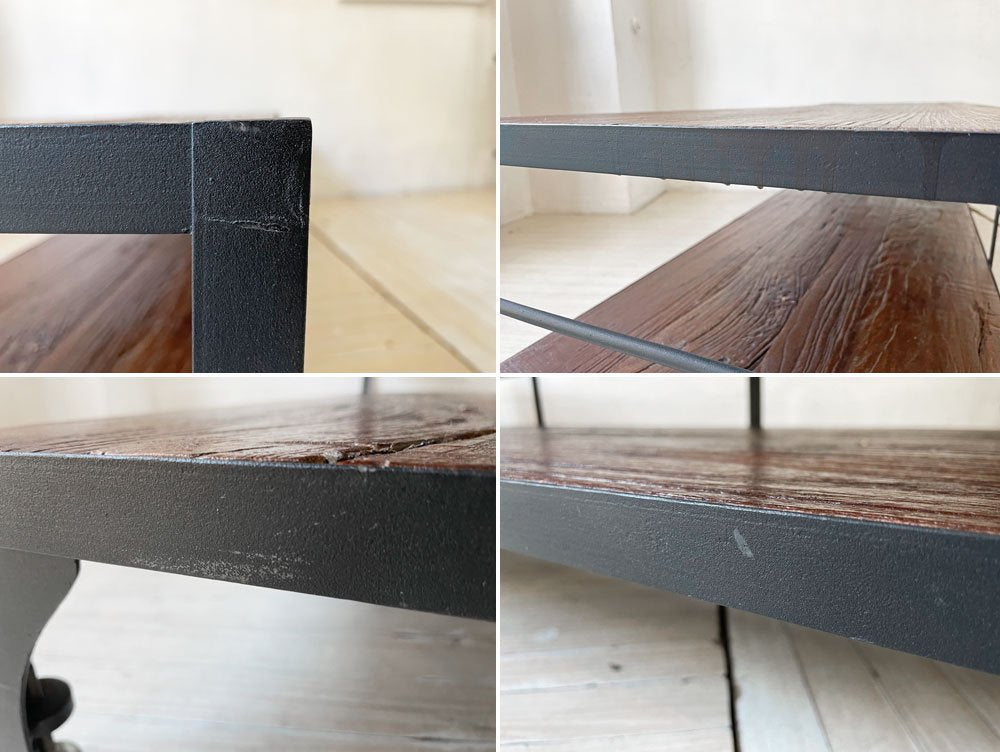 こちらは古材を使用したお品物となります。傷や擦れ、打痕や欠け、色ムラやペイントロス、凸凹やクラック、フレームにクスミや塗装ムラなどがございますが、製造時からの仕様となります。その他、若干の傷や擦れなどがございますが、大きく目立つようなダメージは無く、USED品として概ね良好なコンディションを保っております。
