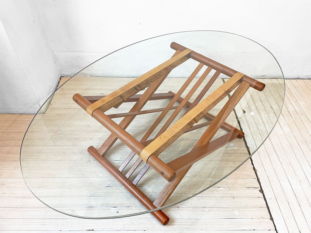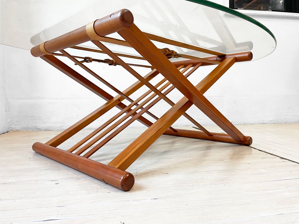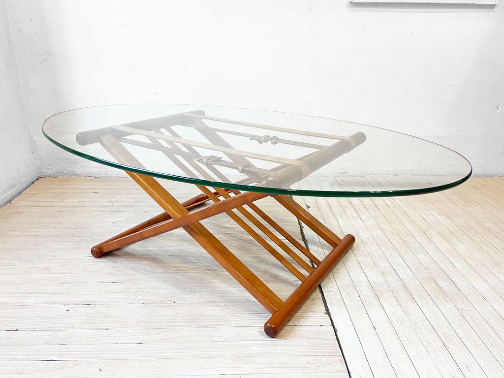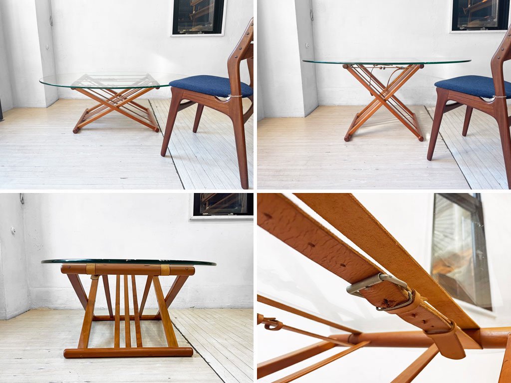 ハスレヴ HASLEV ライズ&フォール Rise & Fall センターテーブル フォールディングテーブル オーバル ガラス チェリー無垢材 レザーベルト ヌメ革 昇降式 アクタス取扱 ★