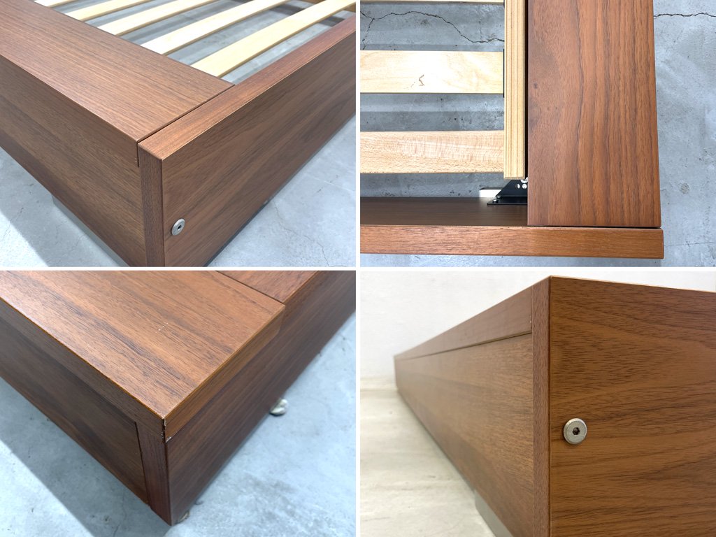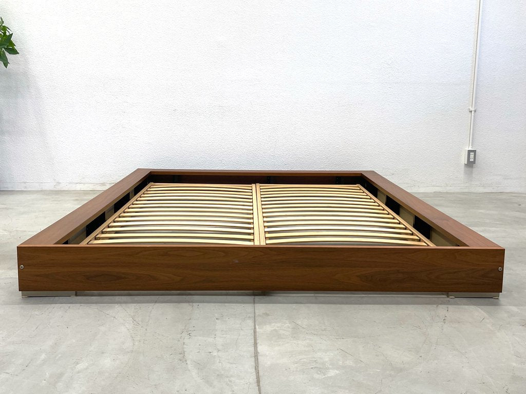 こちらはウォールナット突板を使用したクイーンサイズのベッドフレーム。