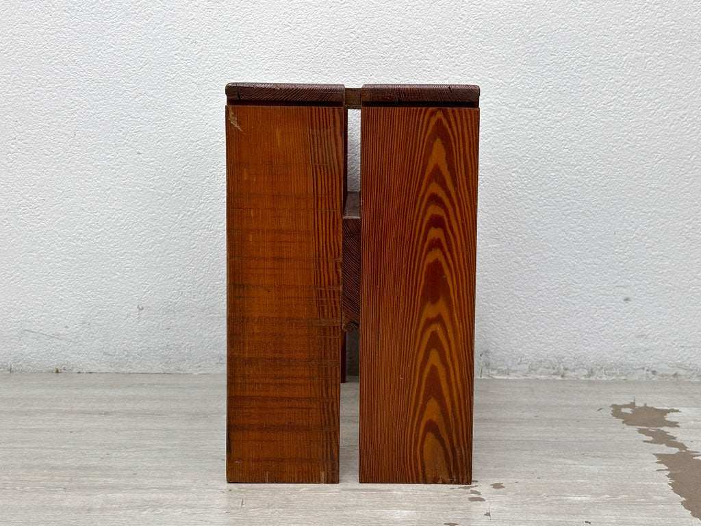経年により味わいを増したパイン無垢材フレーム。余計な装飾の無い直線構造により、木本来の表情がより感じられます。スツール、サイドテーブル、観賞用のディプレイ等、用途に合わせた様々なシーンでお使い頂けます。