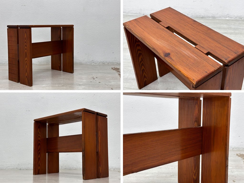 ビンテージ レザルクスツール Les Arcs stool シャルロット・ペリアン Charlotte Perriand パイン無垢材 希少 レアアイテム 青山 NICK WHITE購入 ●