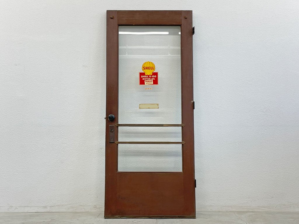 アメリカ ビンテージ 木製フレーム ショップドア アイアンバー付 扉 アパートメントドア 建具 SHELL X-100 ステッカー 〓