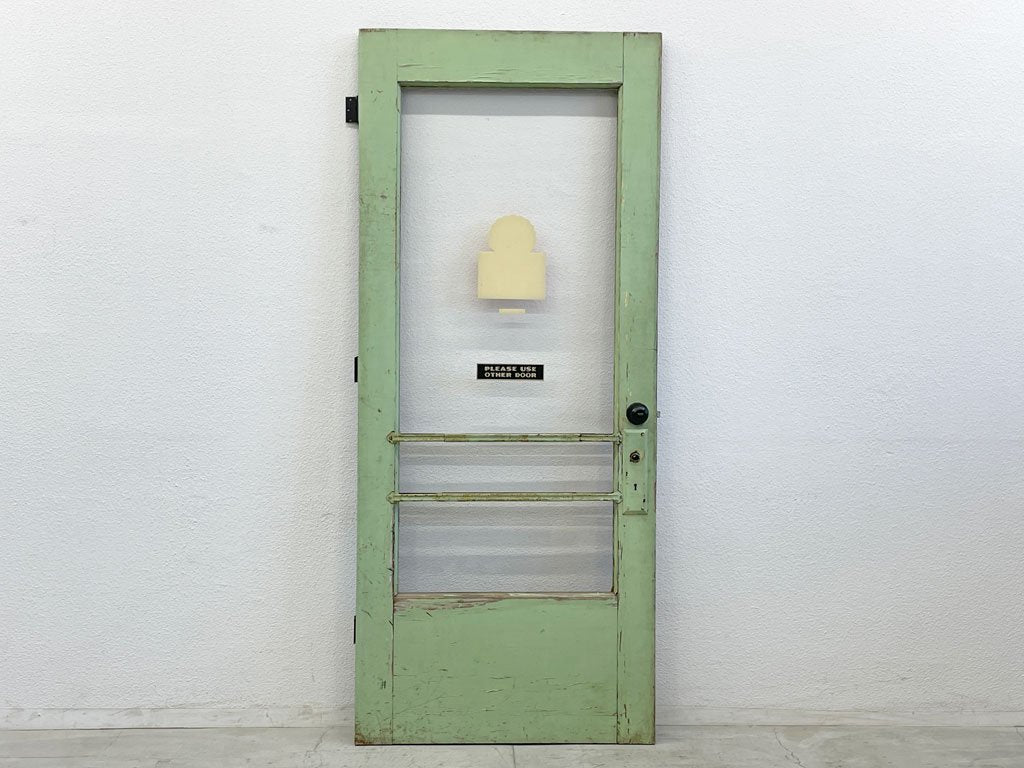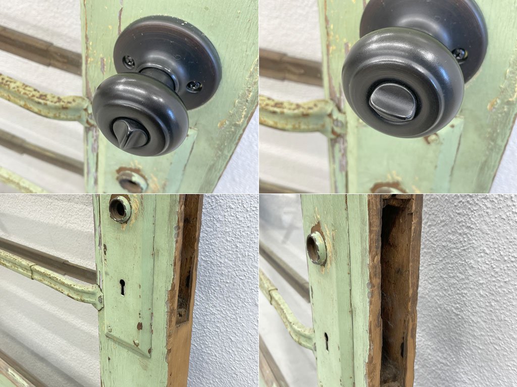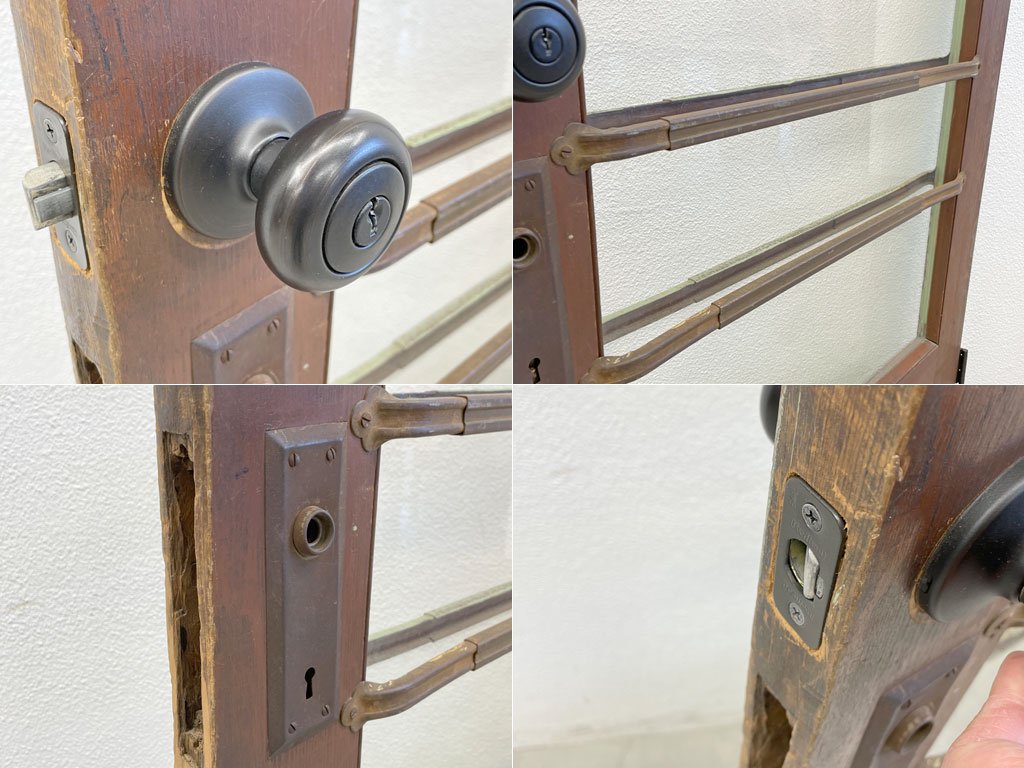 アメリカ ビンテージ 木製フレーム ショップドア アイアンバー付 扉 アパートメントドア 建具 ドアノブ付