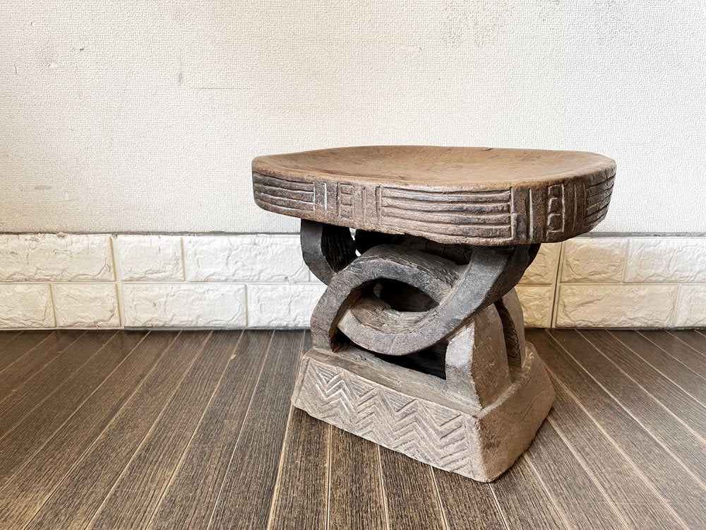 アフリカ バムン族 スツール 腰掛け H30cm プリミティブ 民族 民具 カメルーン ビンテージ ◎
